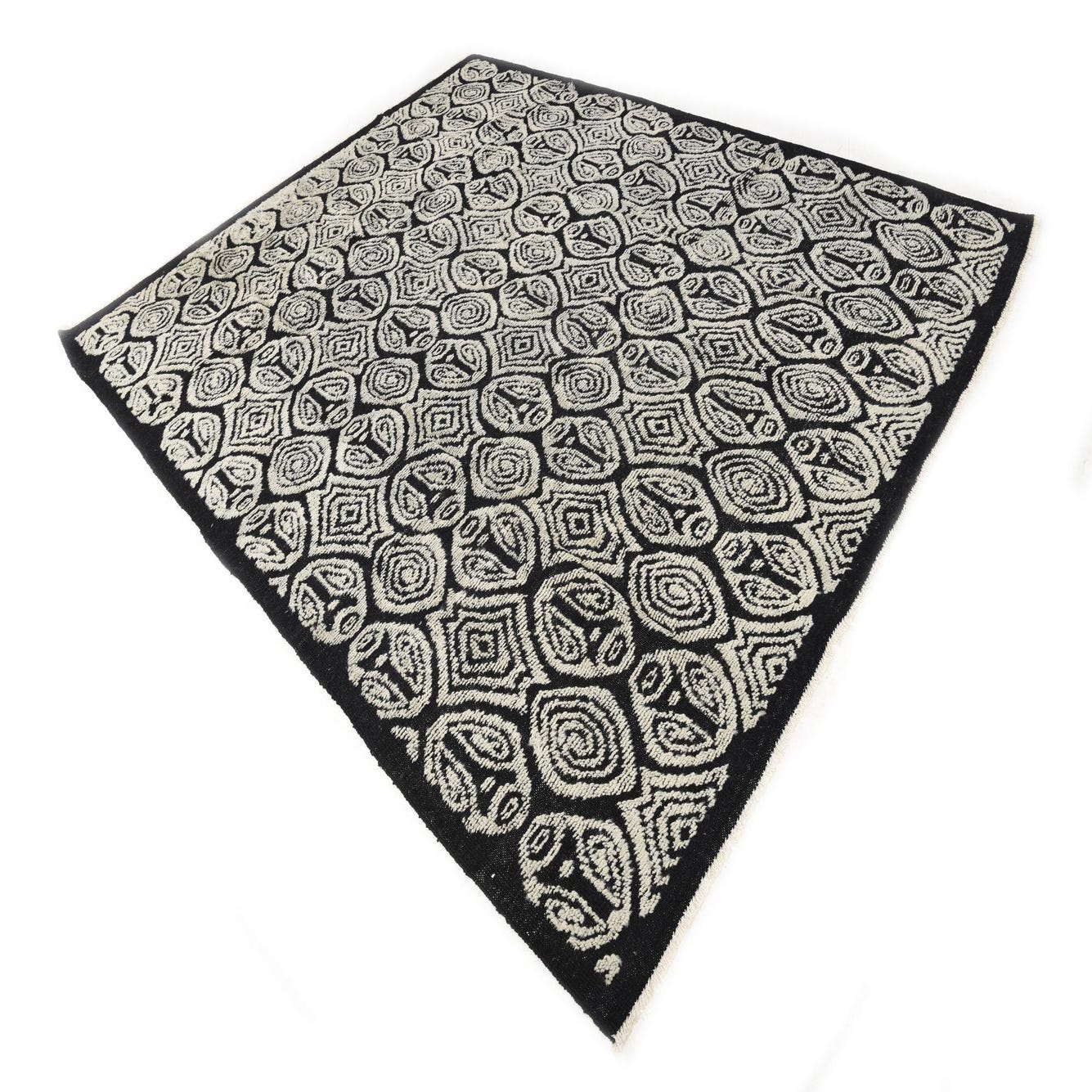 Primary color is Black. Colors in this rug include: Black, Ivory.