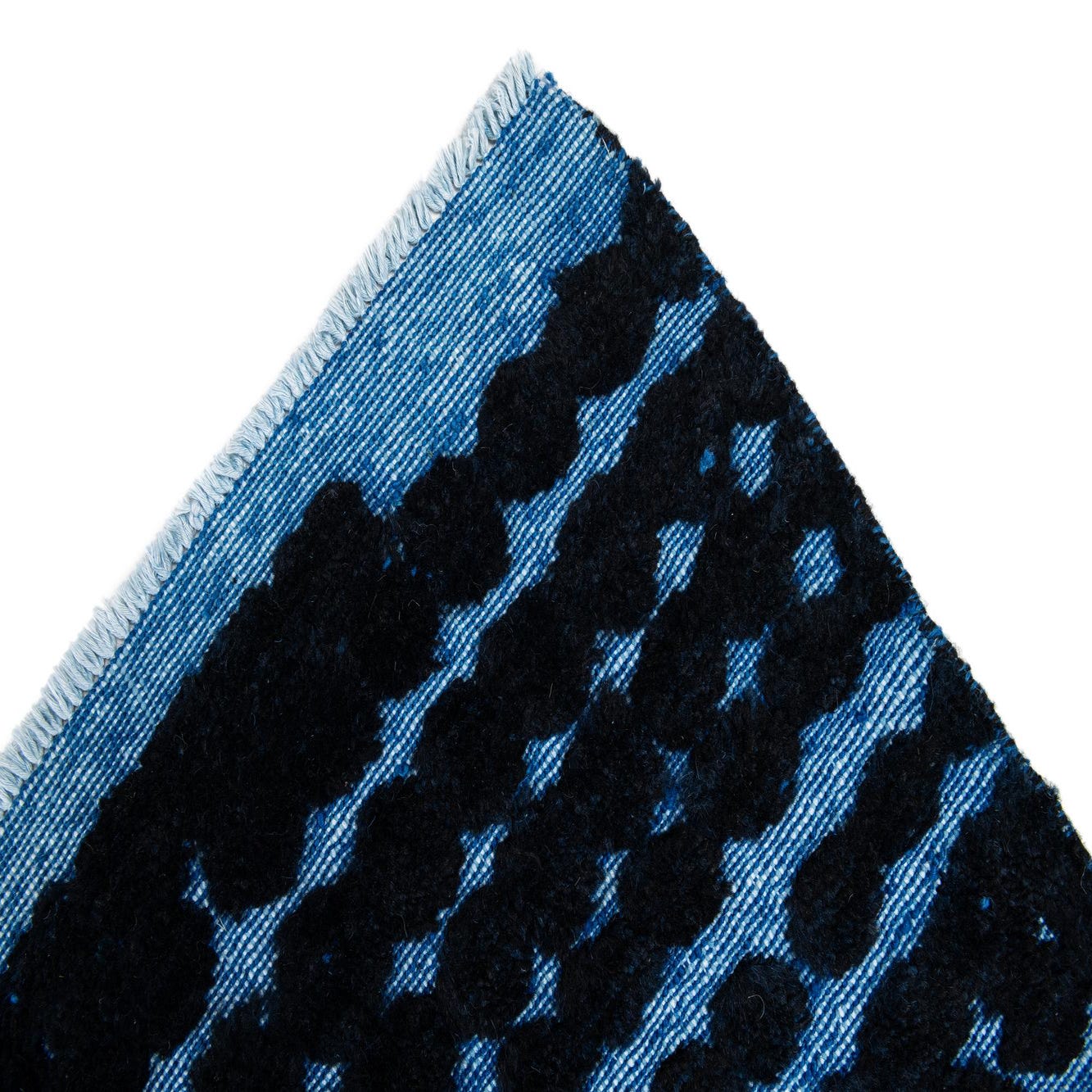 Primary color is Black. Colors in this rug include: Black, Blue.