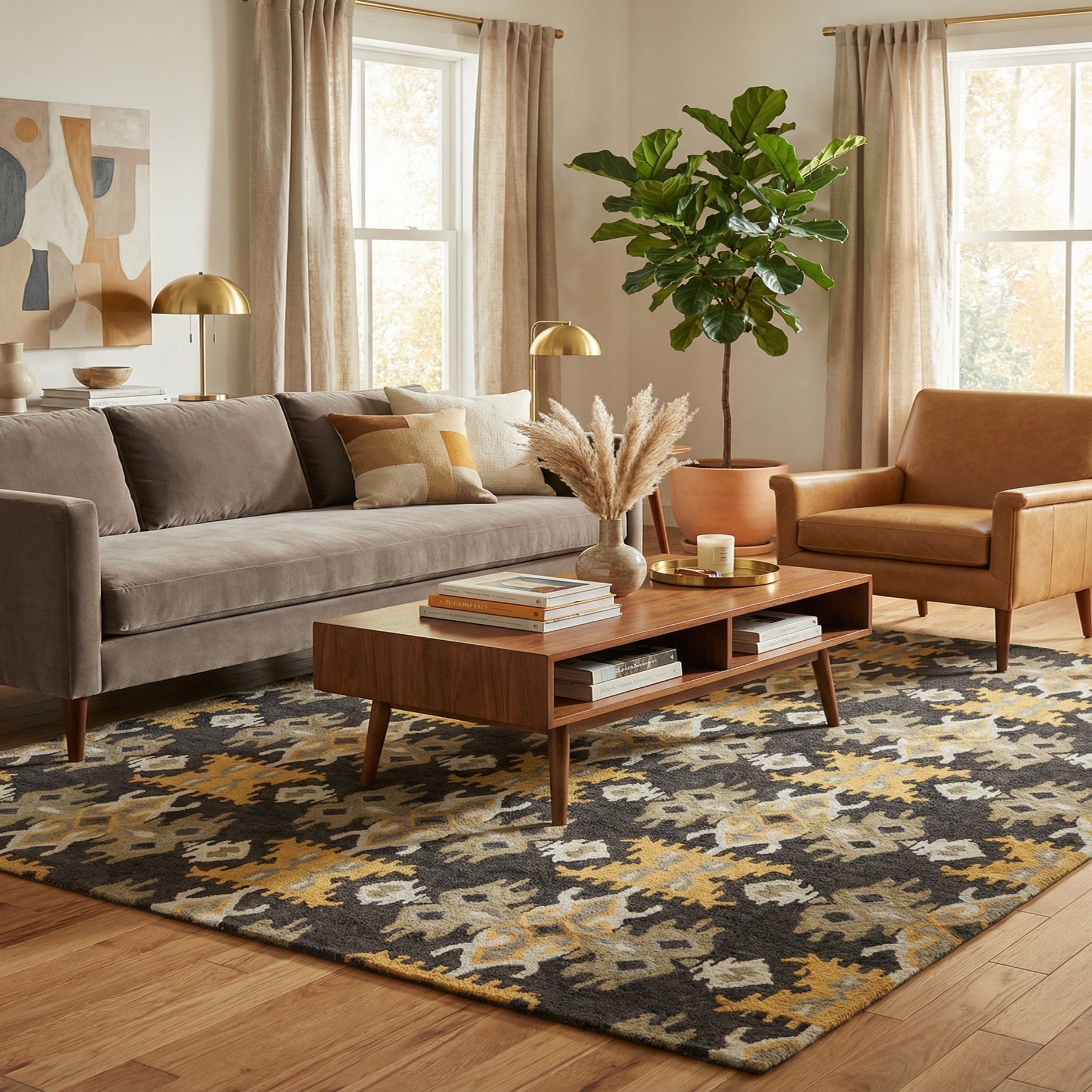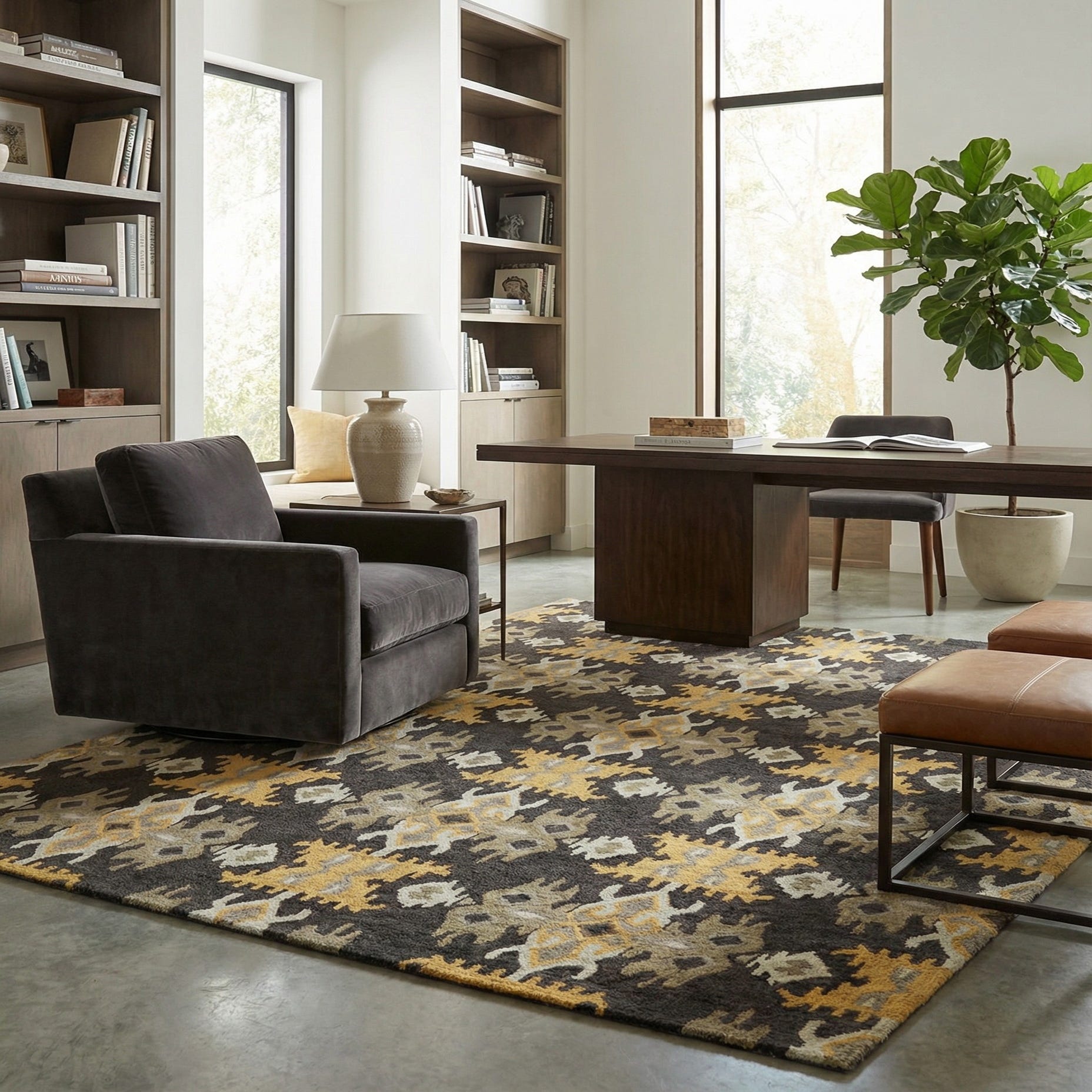 In summary, the Luna Collection rug is a versatile and stylish addition to rooms that benefit from a statement floor covering, blending rich colors with engaging patterns to create an appealing focus in the living room, dining area, or bedroom.