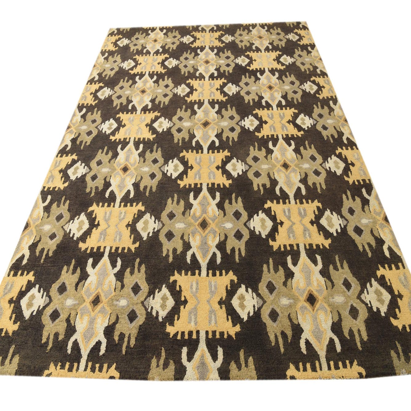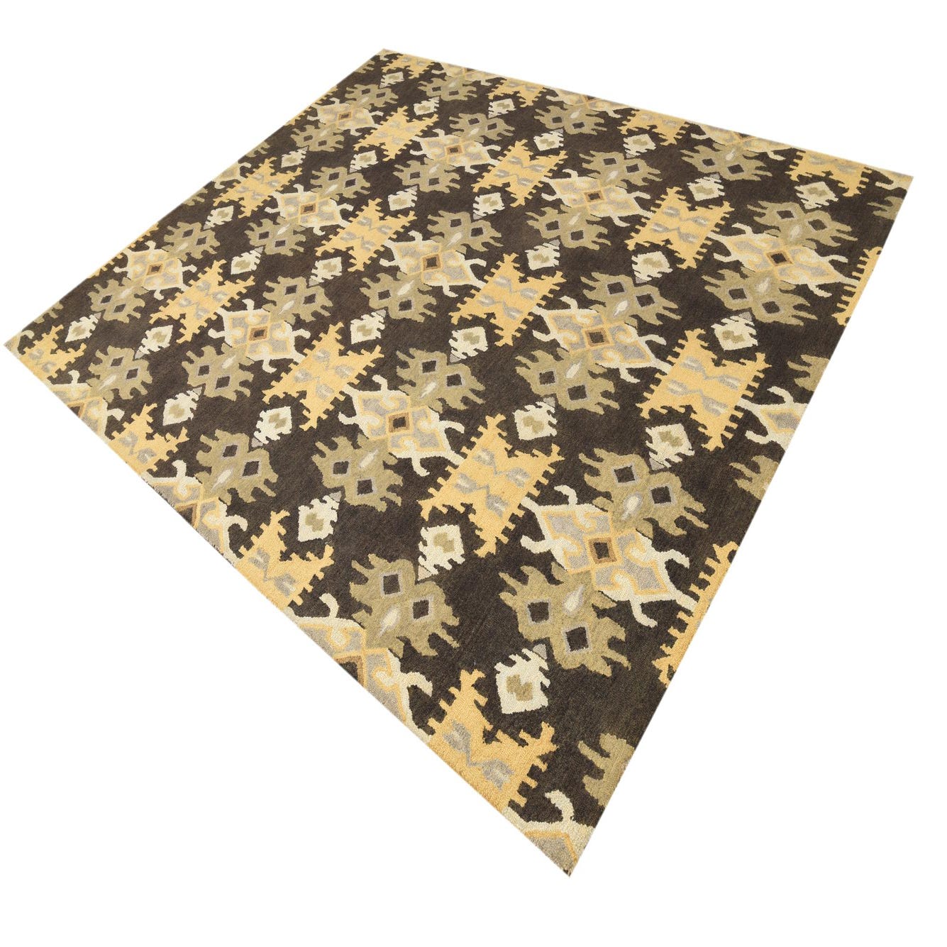 A rectangular 8x10 Luna Collection rug with a modern geometric pattern in black, gold, and grey tones.