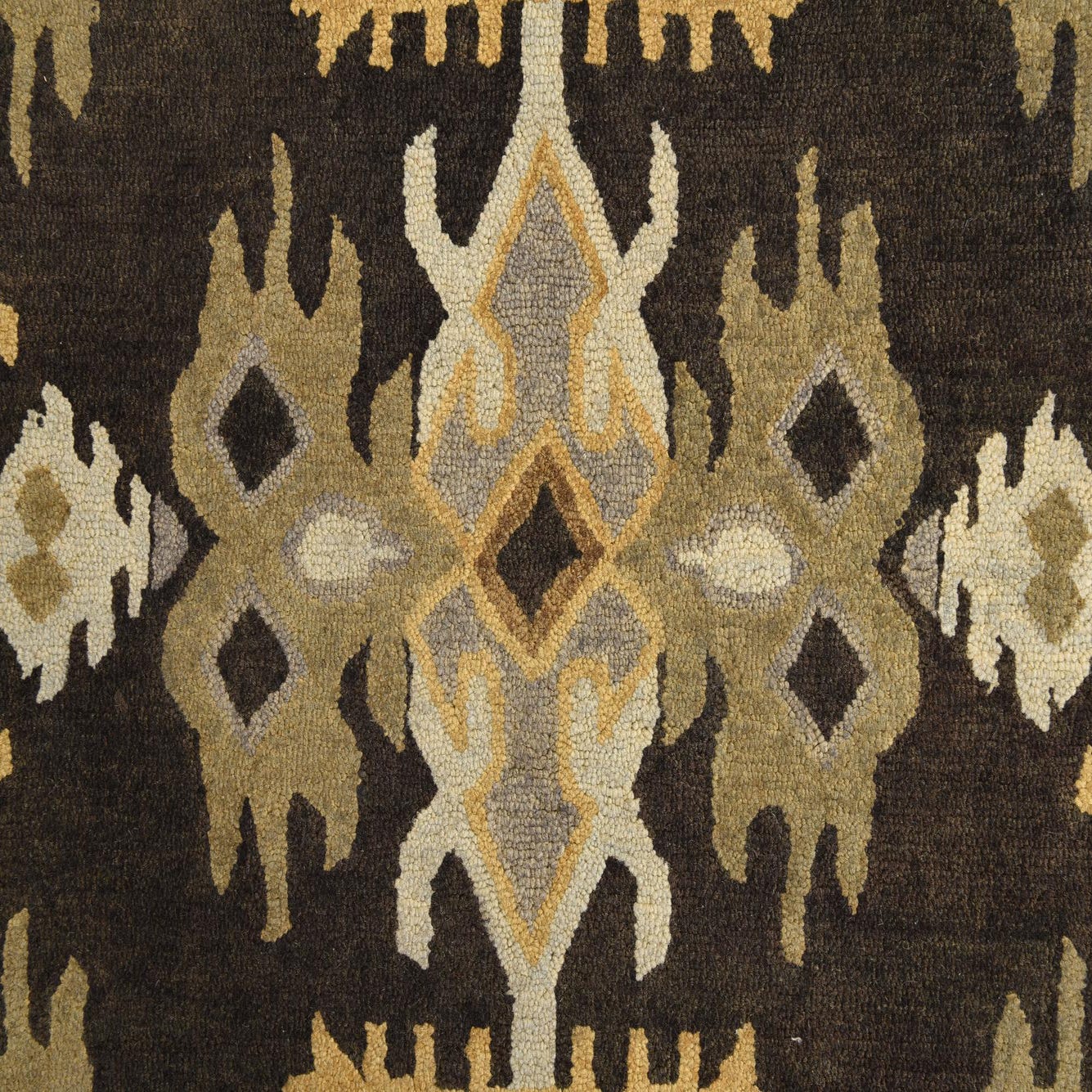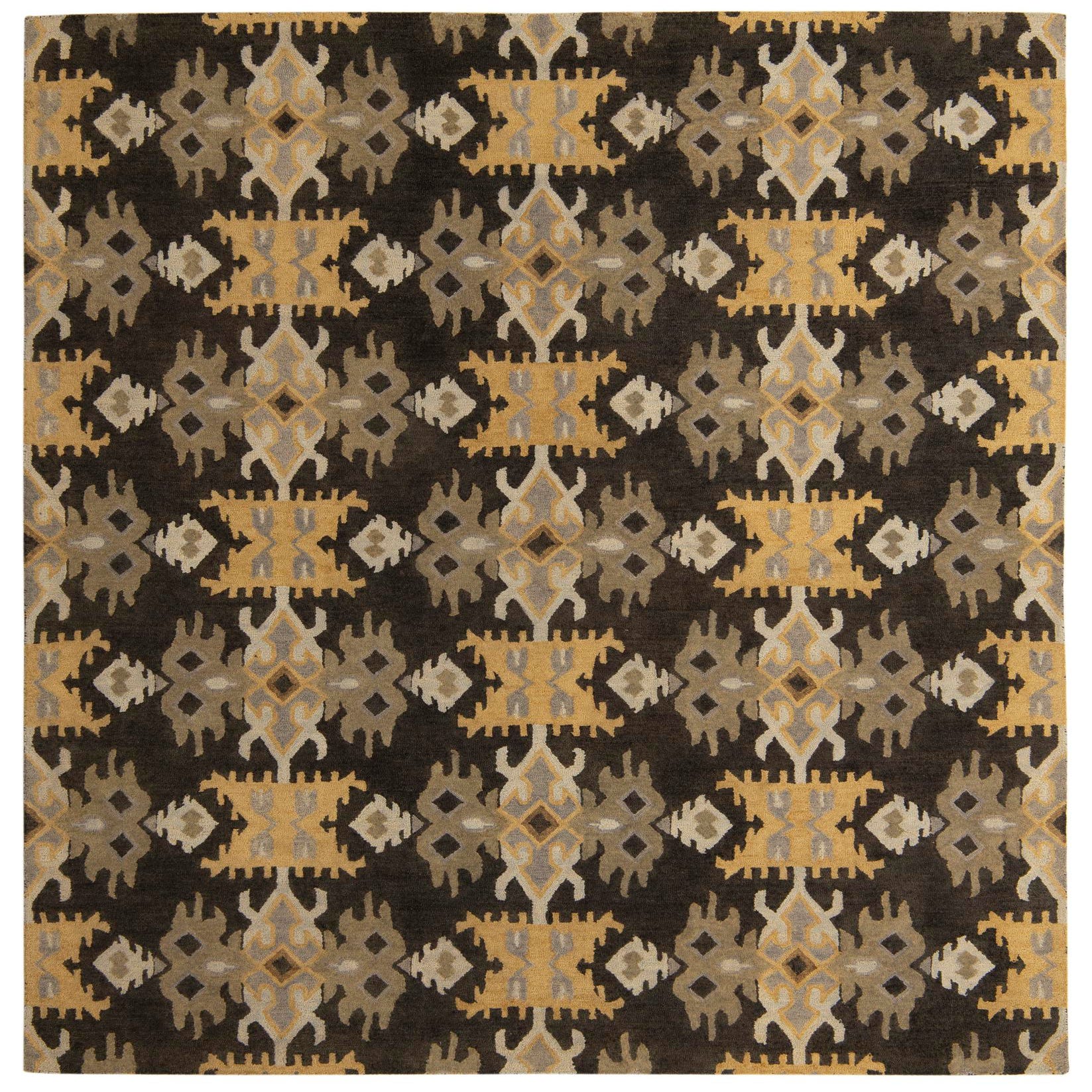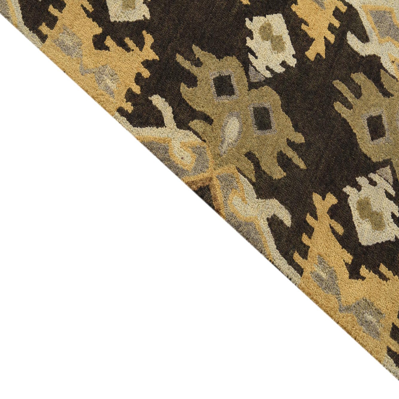 Primary color is Black. Colors in this rug include: Black, Gold, Gray, Light Blue, Olive.