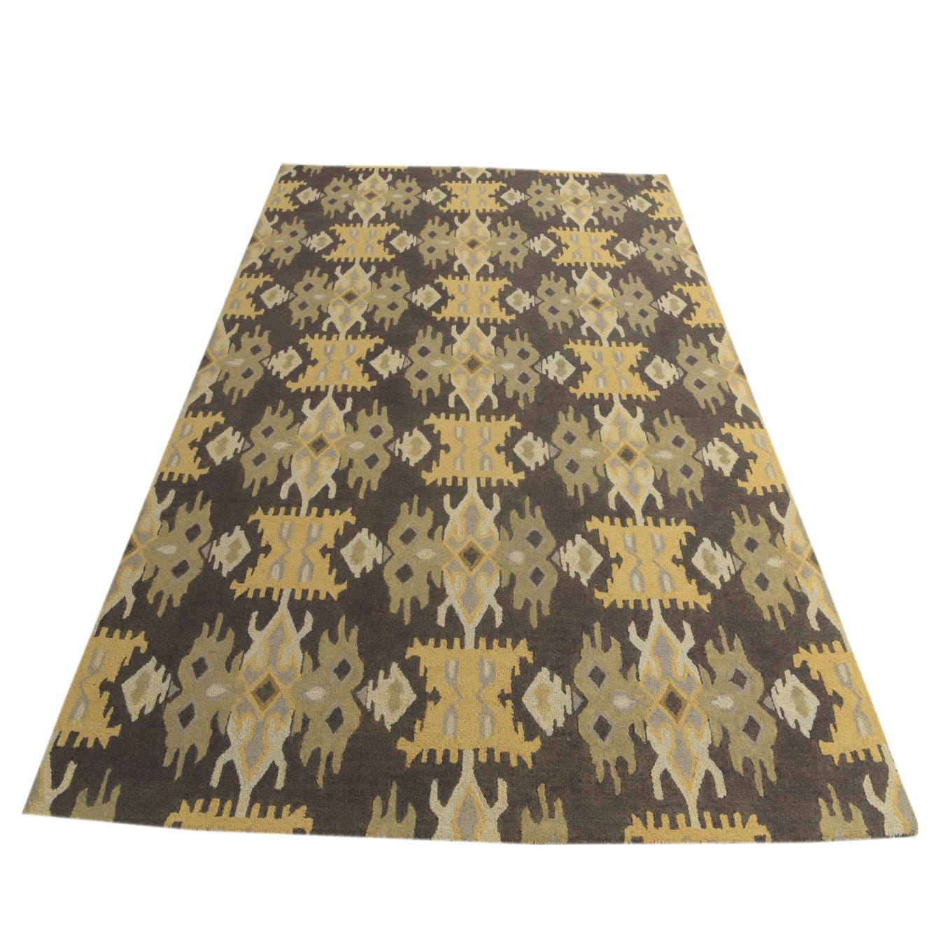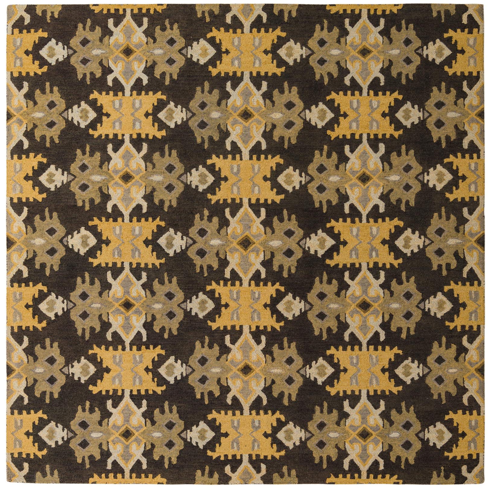 Primary color is Black. Colors in this rug include: Black, Gold, Gray, Ivory, Light Brown.