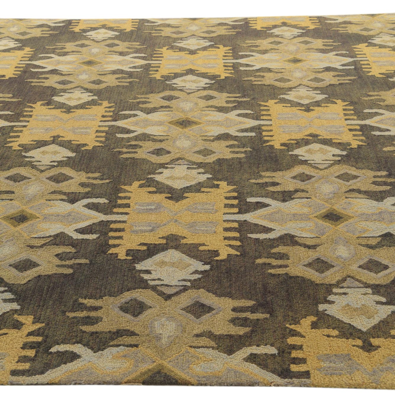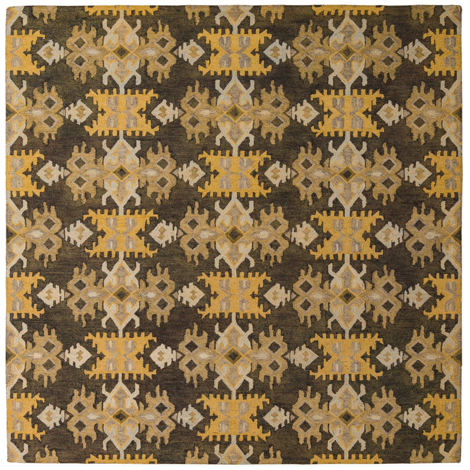 Primary color is Black. Colors in this rug include: Black, Gray, Ivory, Yellow, Light Brown.