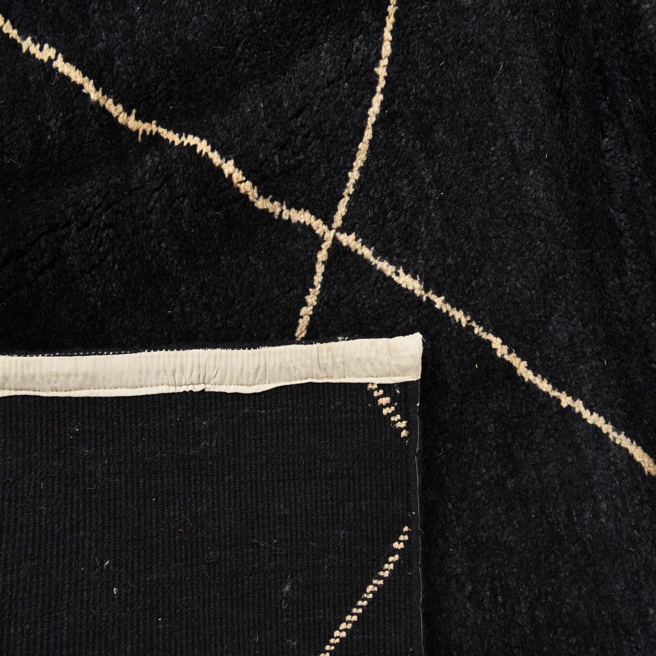 Primary color is Black. Colors in this rug include: Black, Beige.