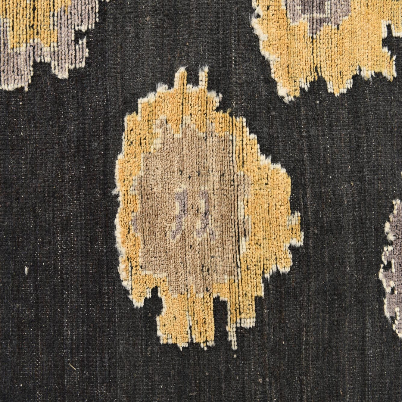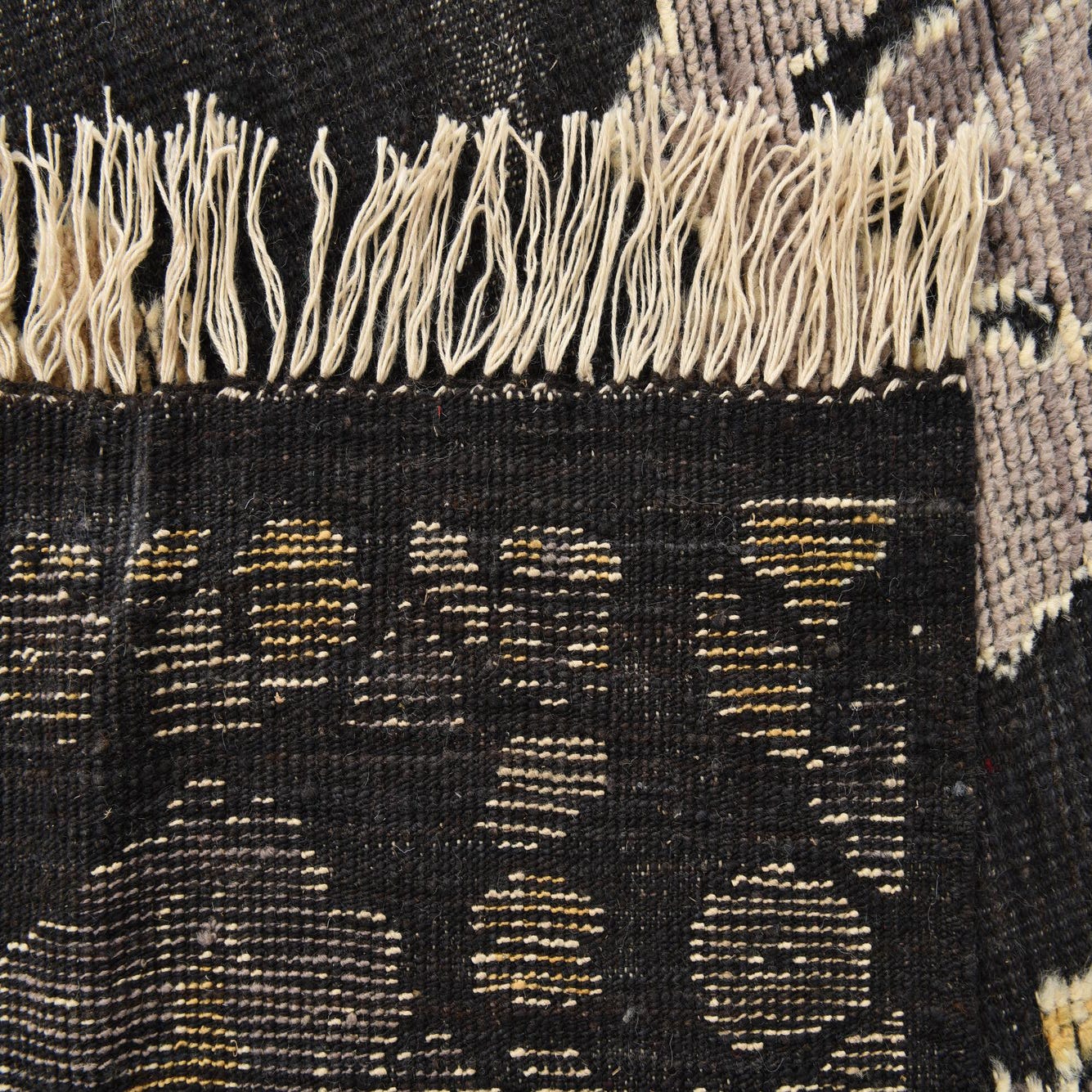 Primary color is Black. Colors in this rug include: Black, Beige, Gray, Yellow.