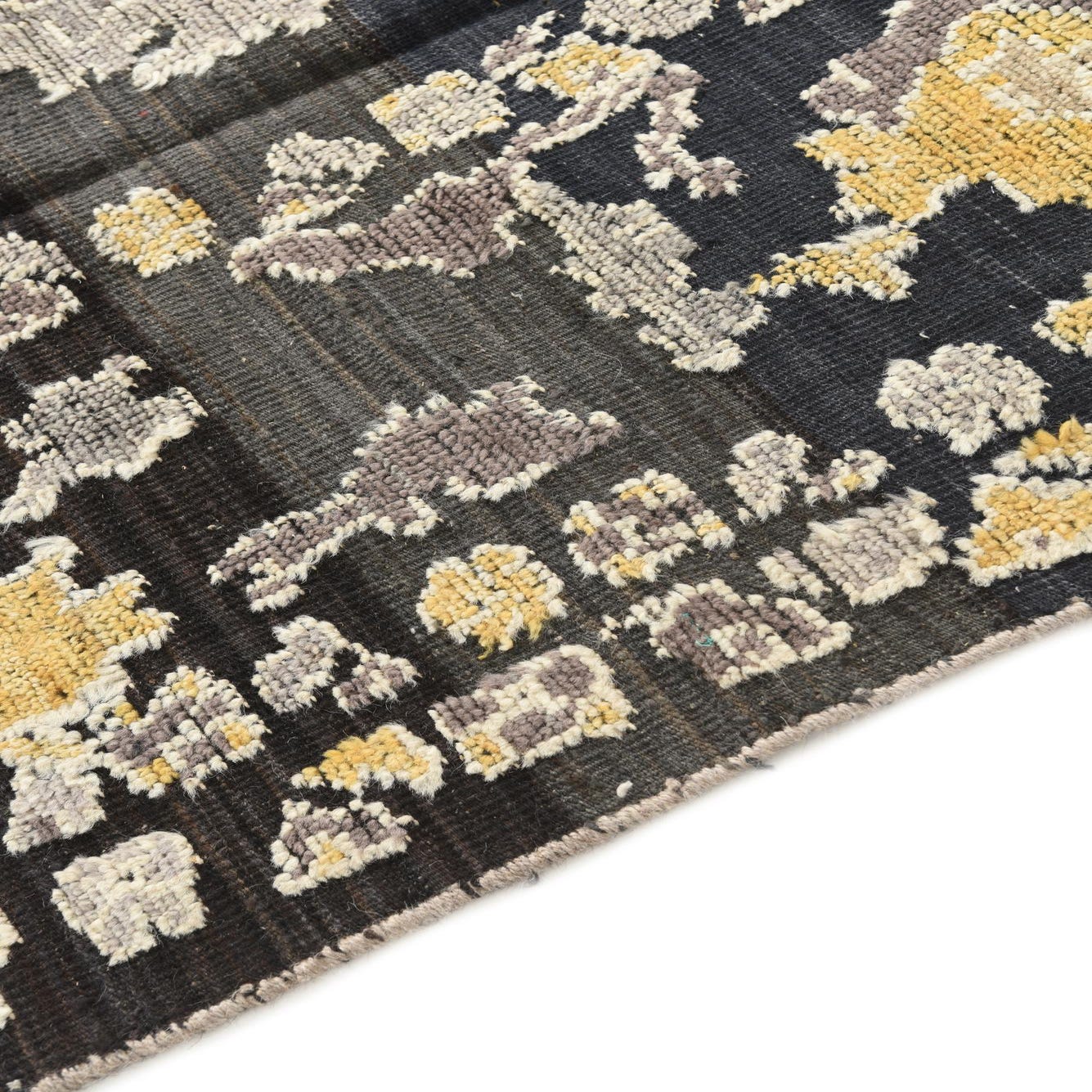 Primary color is Black. Colors in this rug include: Black, Gray, Ivory, Yellow, Brown.