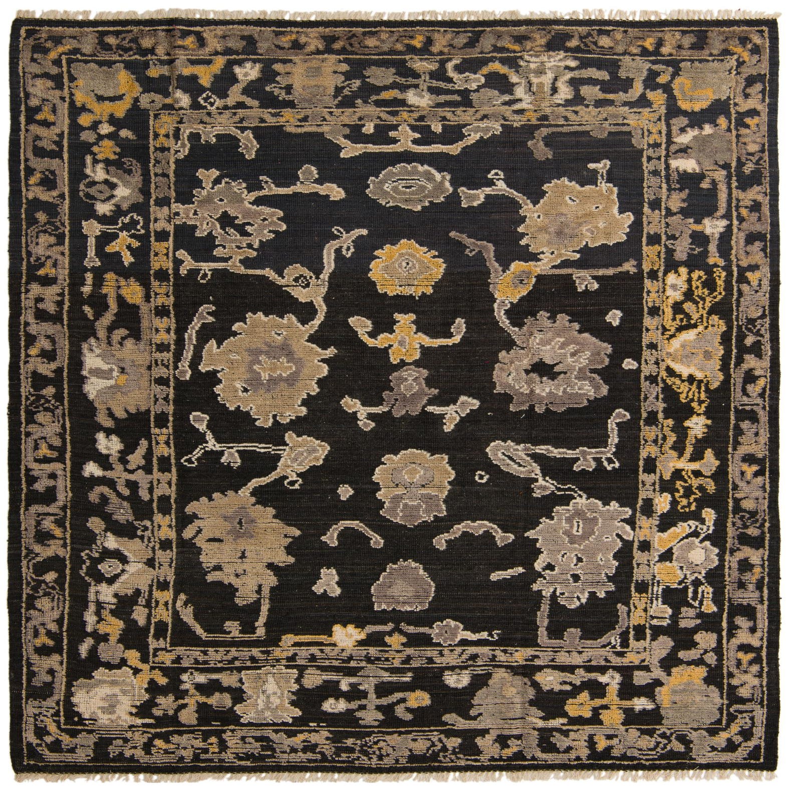 Primary color is Black. Colors in this rug include: Black, Beige, Gray, Ivory, Light Brown, Yellow.