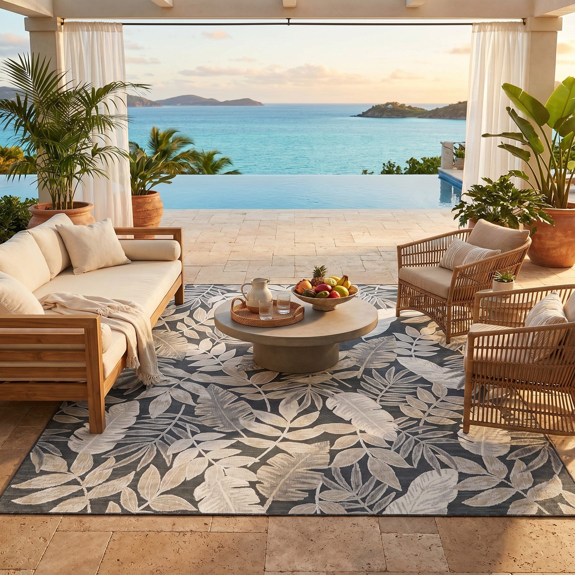 8' 2 x 10' Easy-Clean Botanical Indoor / Outdoor Rug