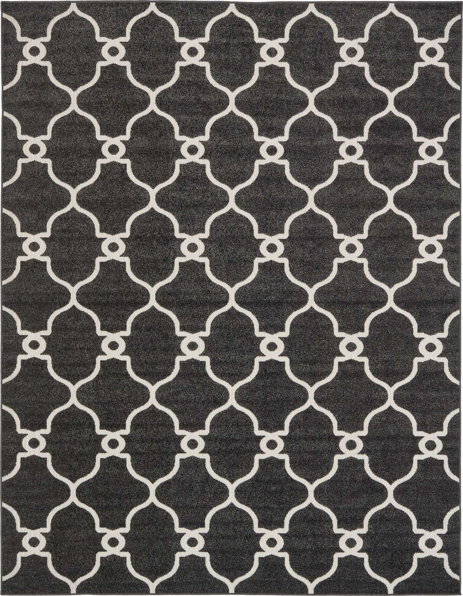The textured surface provides a pleasant underfoot feel, while the crisp lines of the trellis design make it a versatile piece that can elevate a variety of decor themes. The black and ivory color scheme of the rug ensures it can seamlessly integrate into both monochromatic and color-rich interiors. It’s an excellent choice for outdoor patios, dining areas, or inside the home in living rooms, entryways, or dining spaces looking for a touch of modern elegance. Its design works well with transitional, modern, or minimalist decors, complementing metal or wrought iron outdoor furniture as well as indoor furnishings in similar hues.