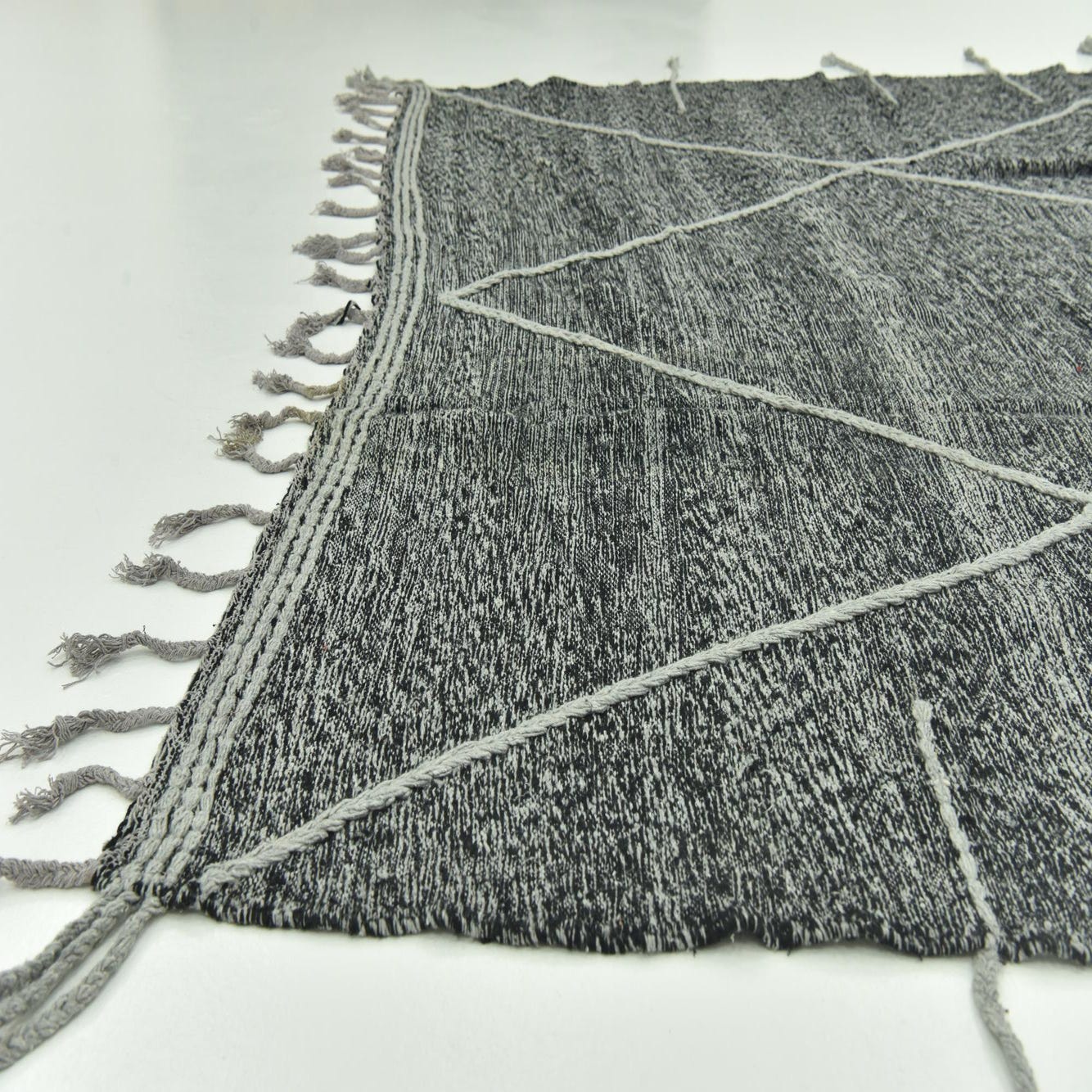 Primary color is Black. Colors in this rug include: Black, Gray.