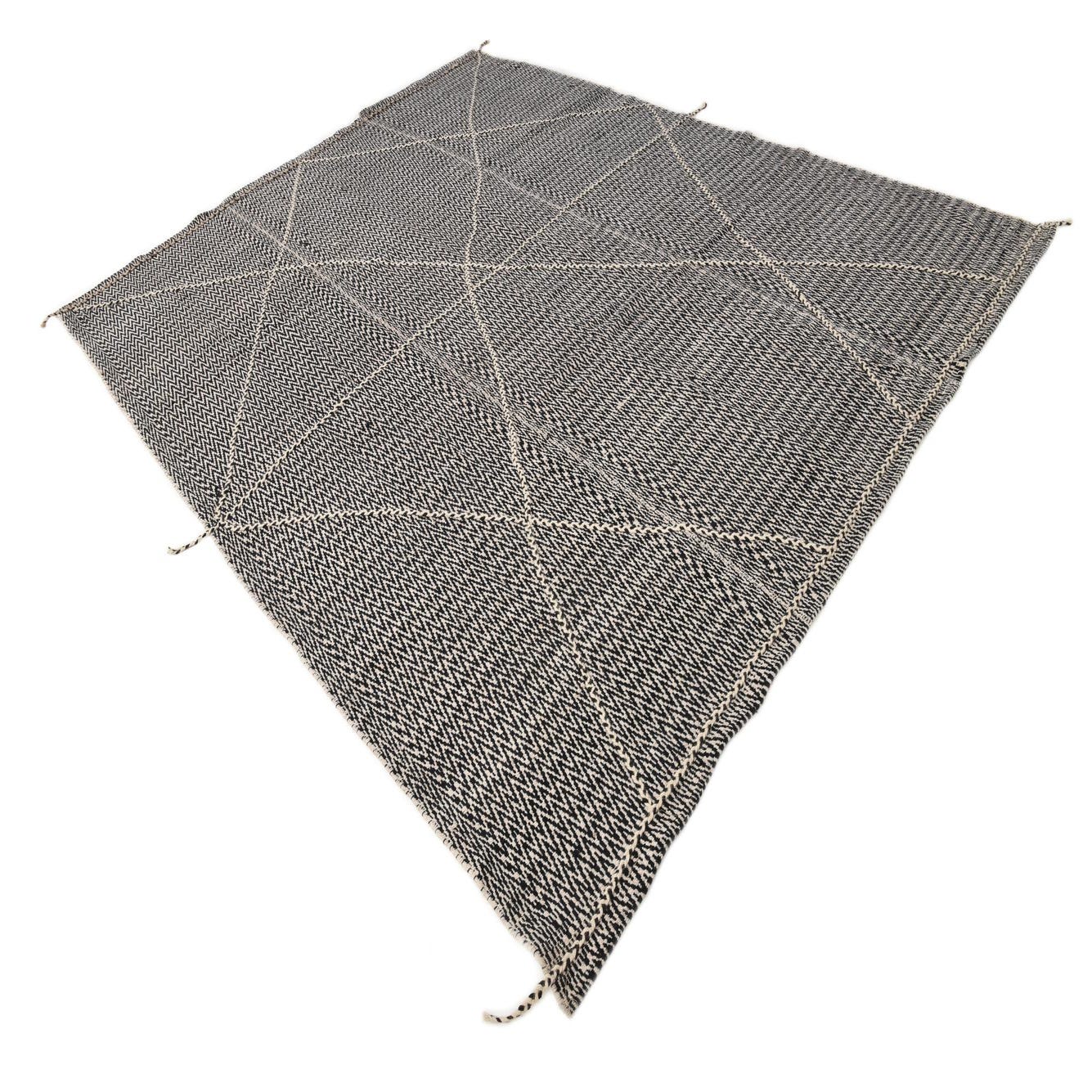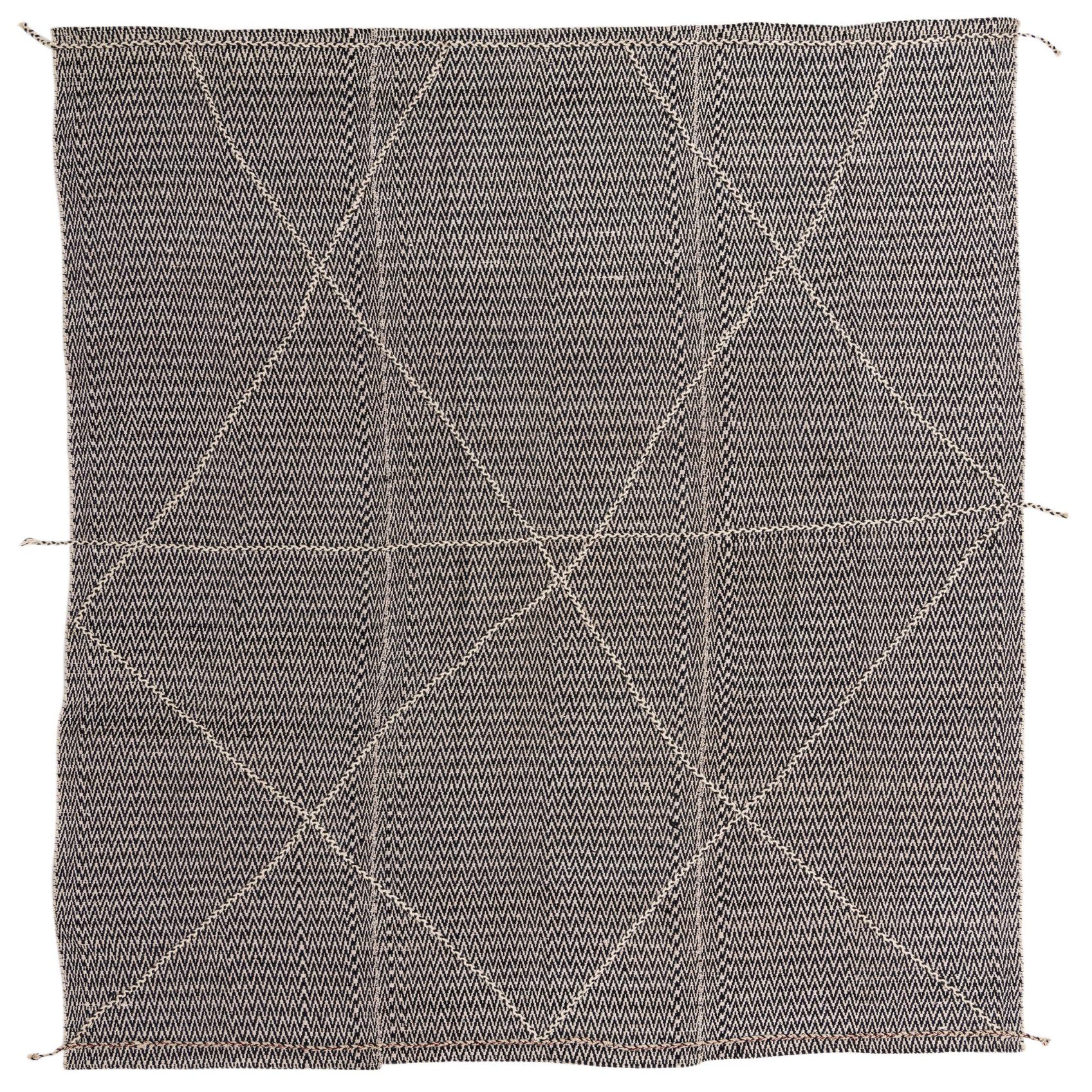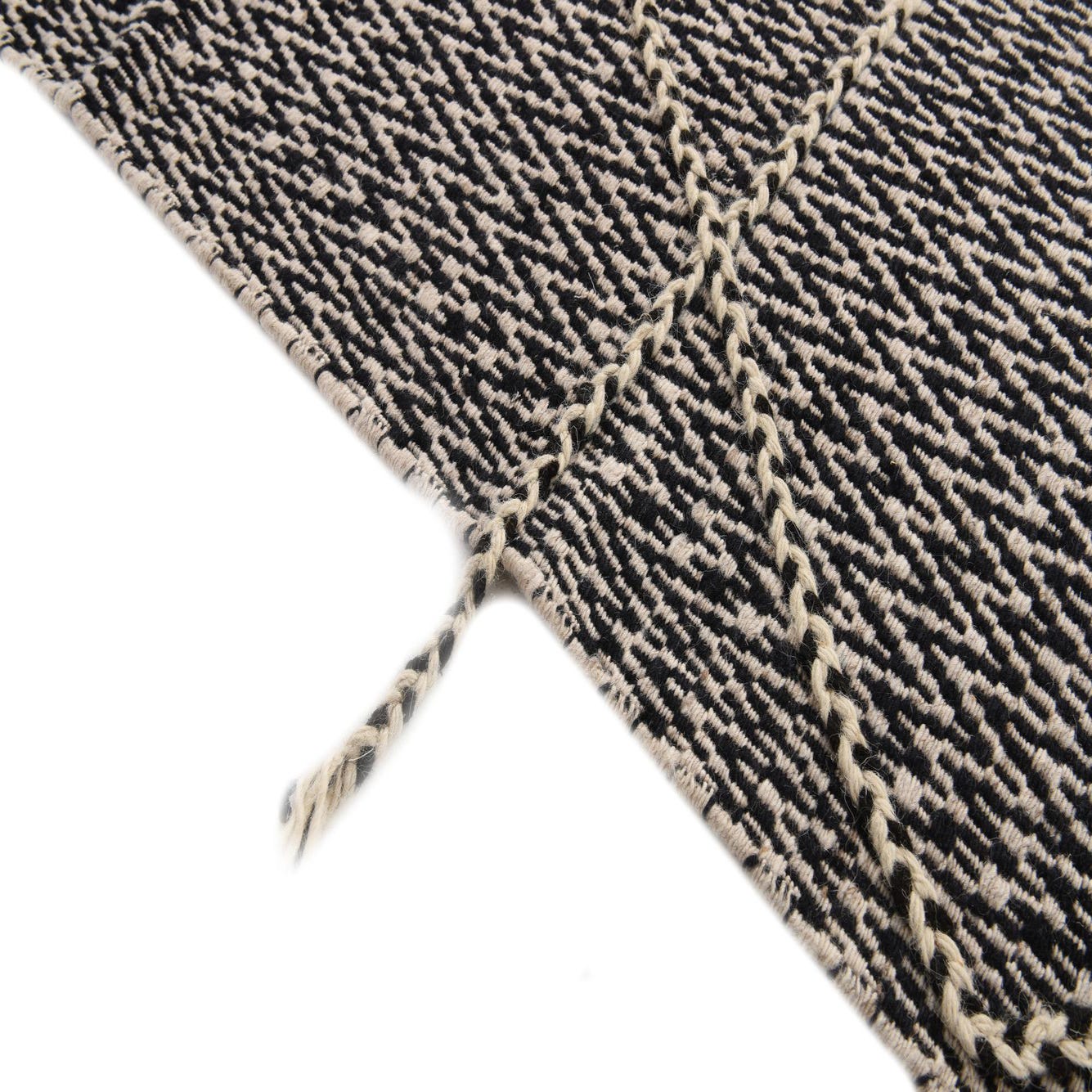 A 9x11 rectangular Darya rug in black wool, featuring a modern geometric pattern with textured white stitching.