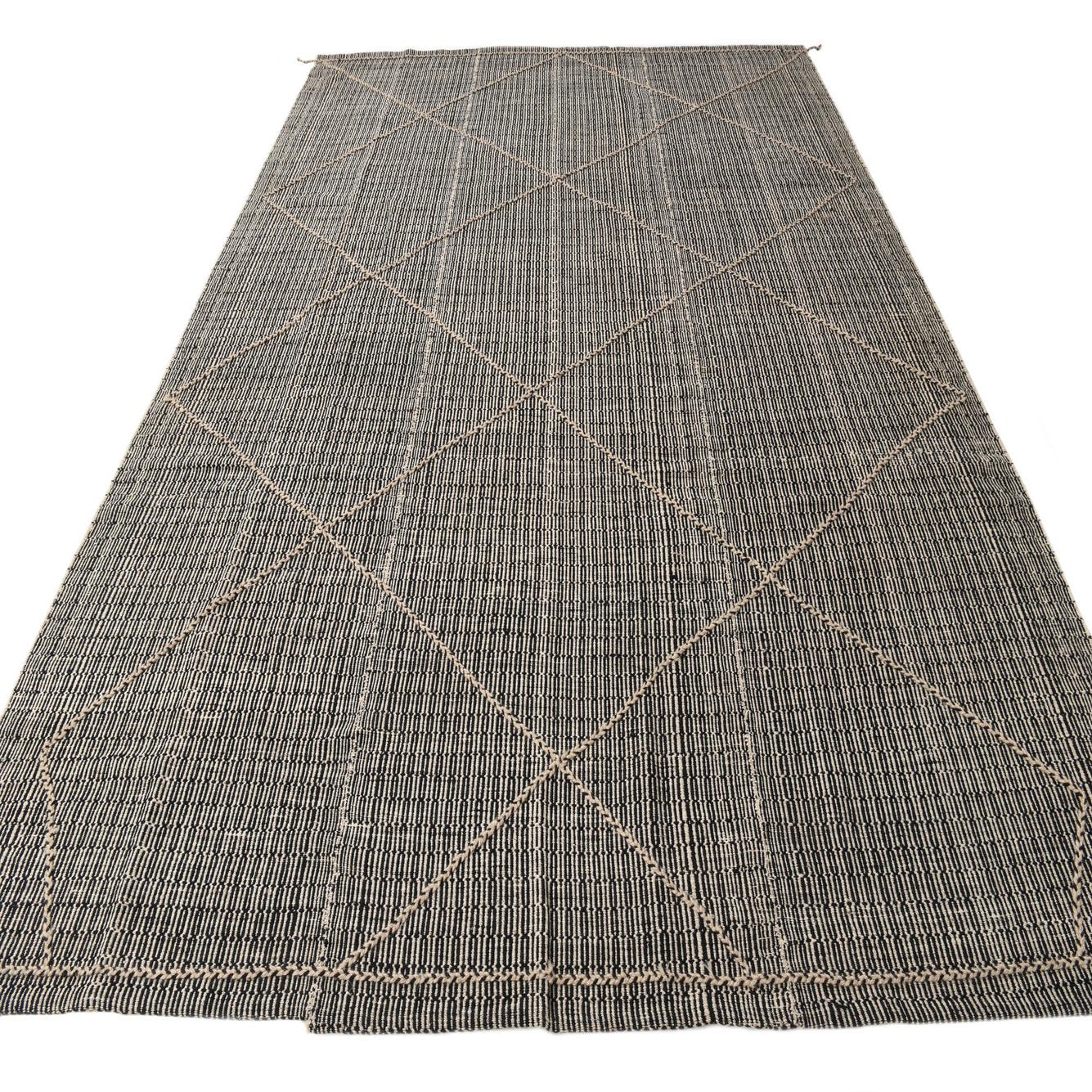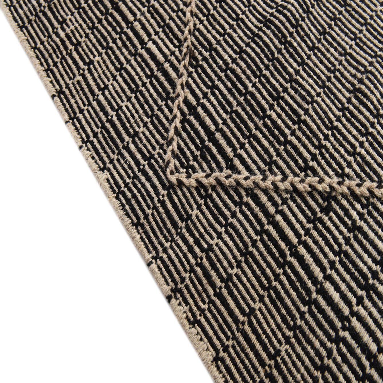 Primary color is Black. Colors in this rug include: Black, Natural.