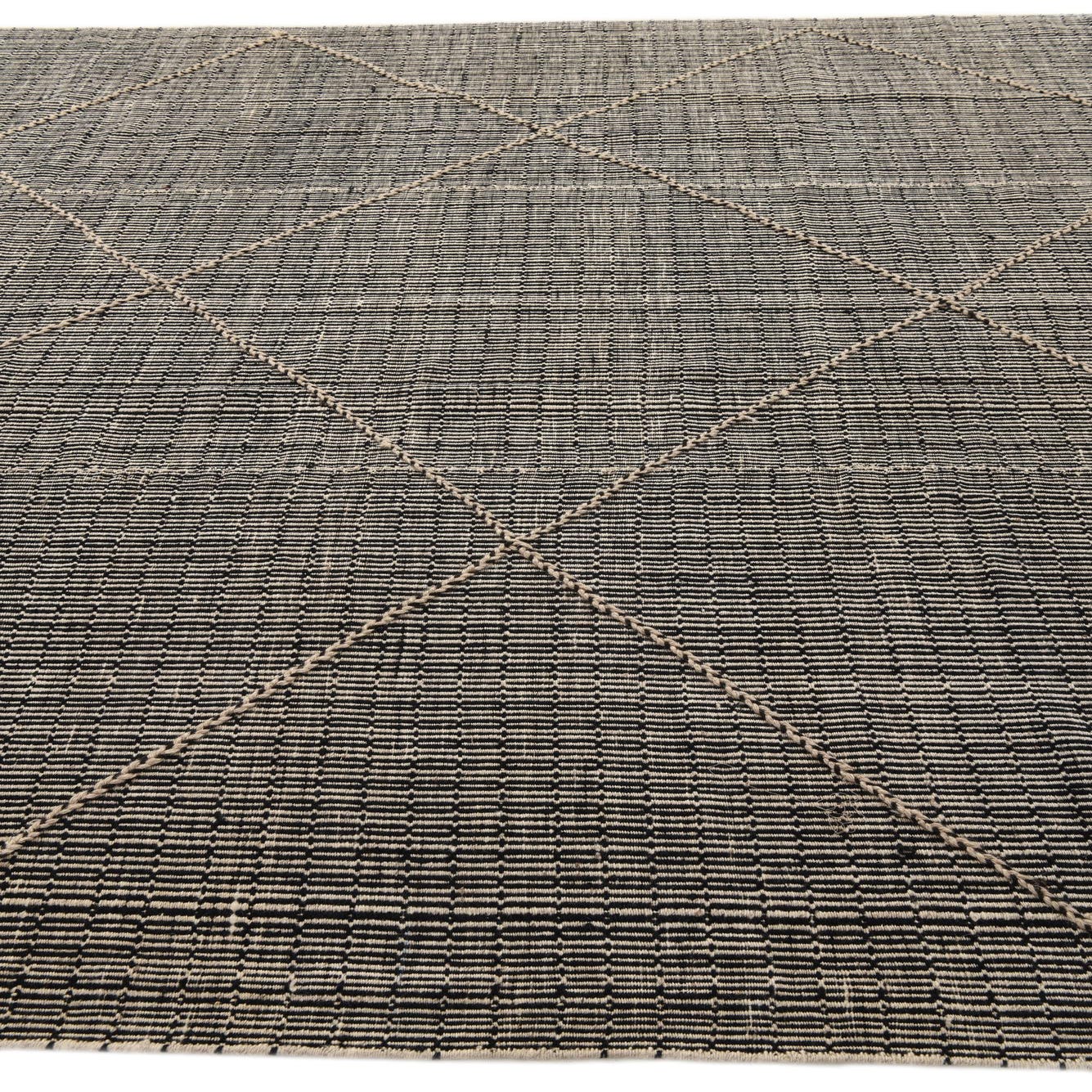 A 9x12 rectangular Darya rug in black wool, featuring a textured modern oriental pattern with light diamond shapes.