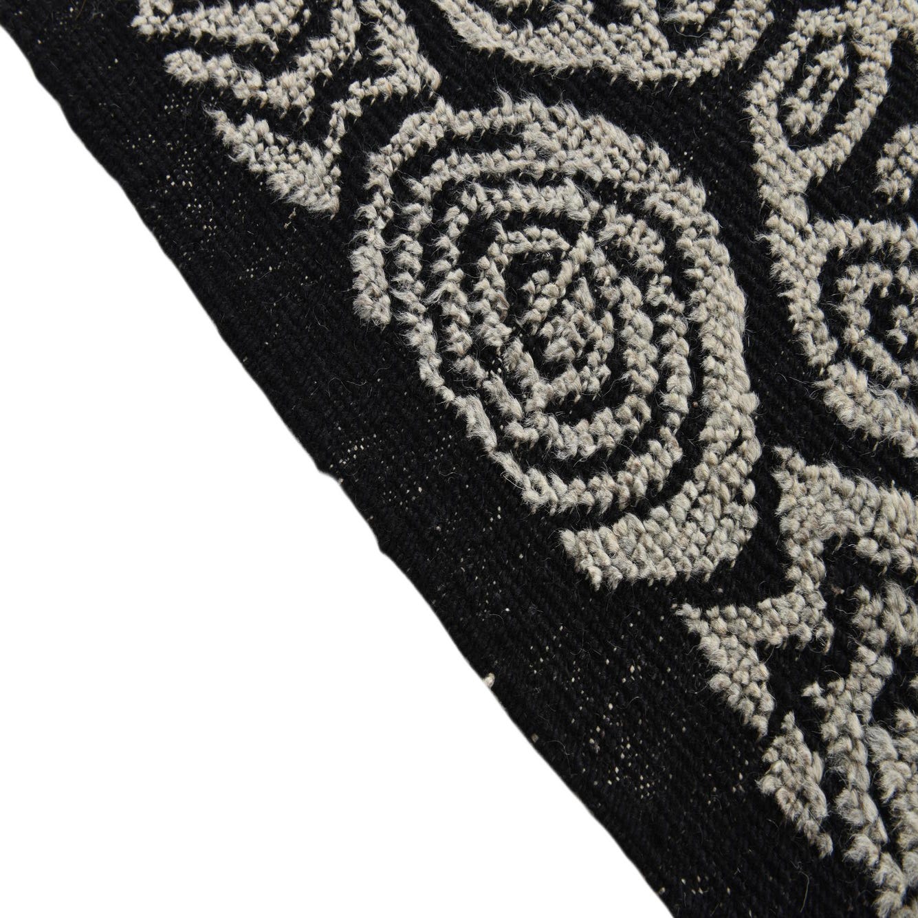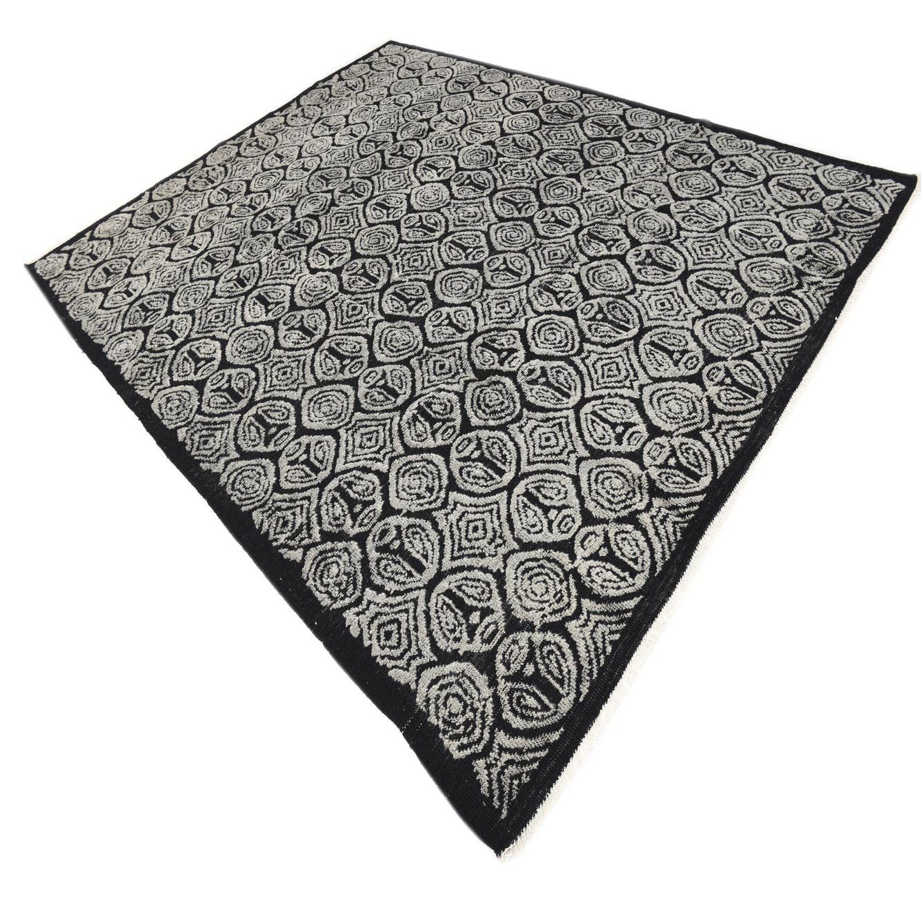 Primary color is Black. Colors in this rug include: Black, Gray, Ivory.