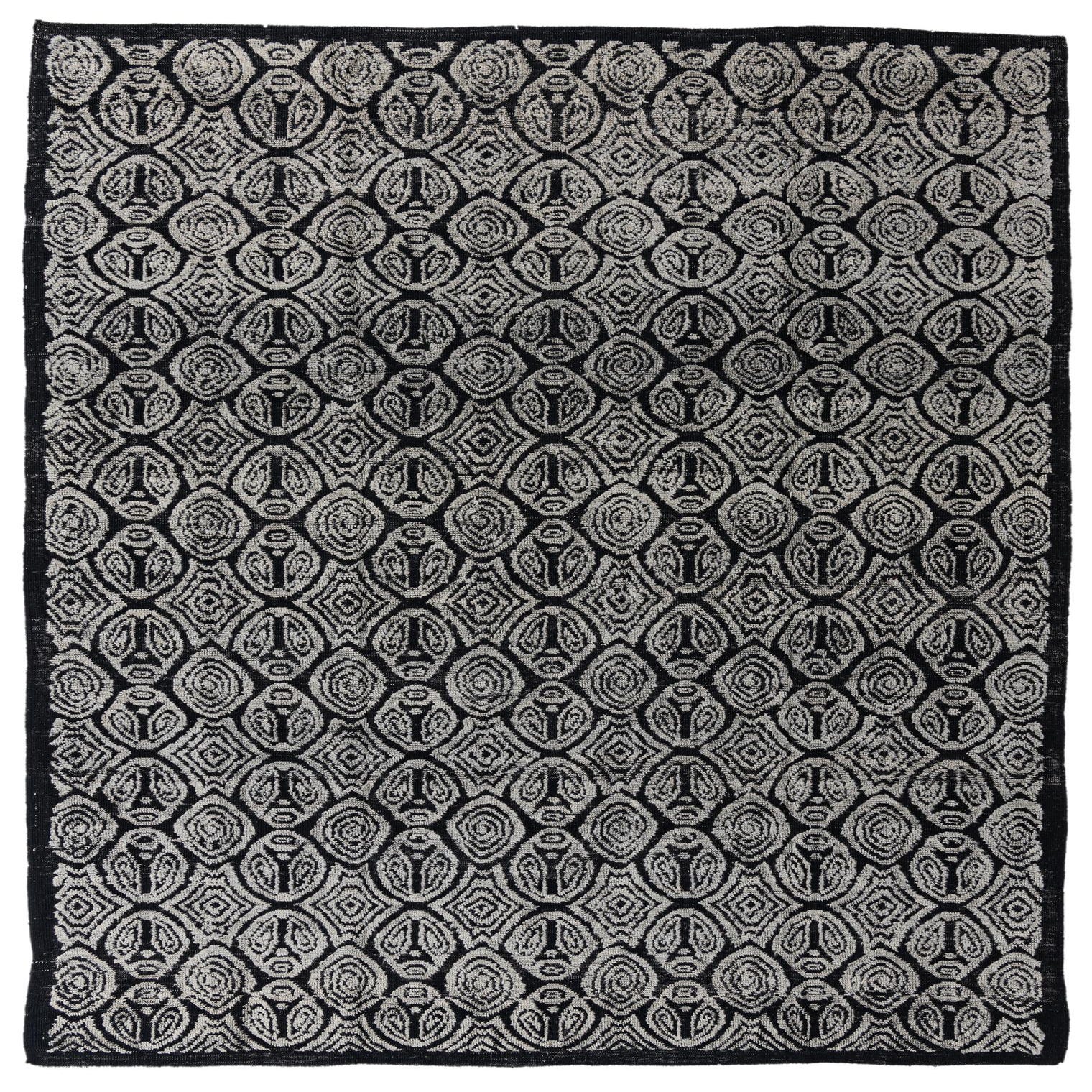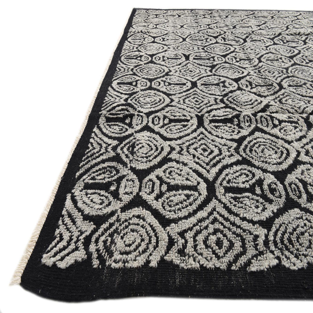 A 9x12 rectangular Darya rug in black and off-white, featuring a modern oriental pattern with textured wool pile.