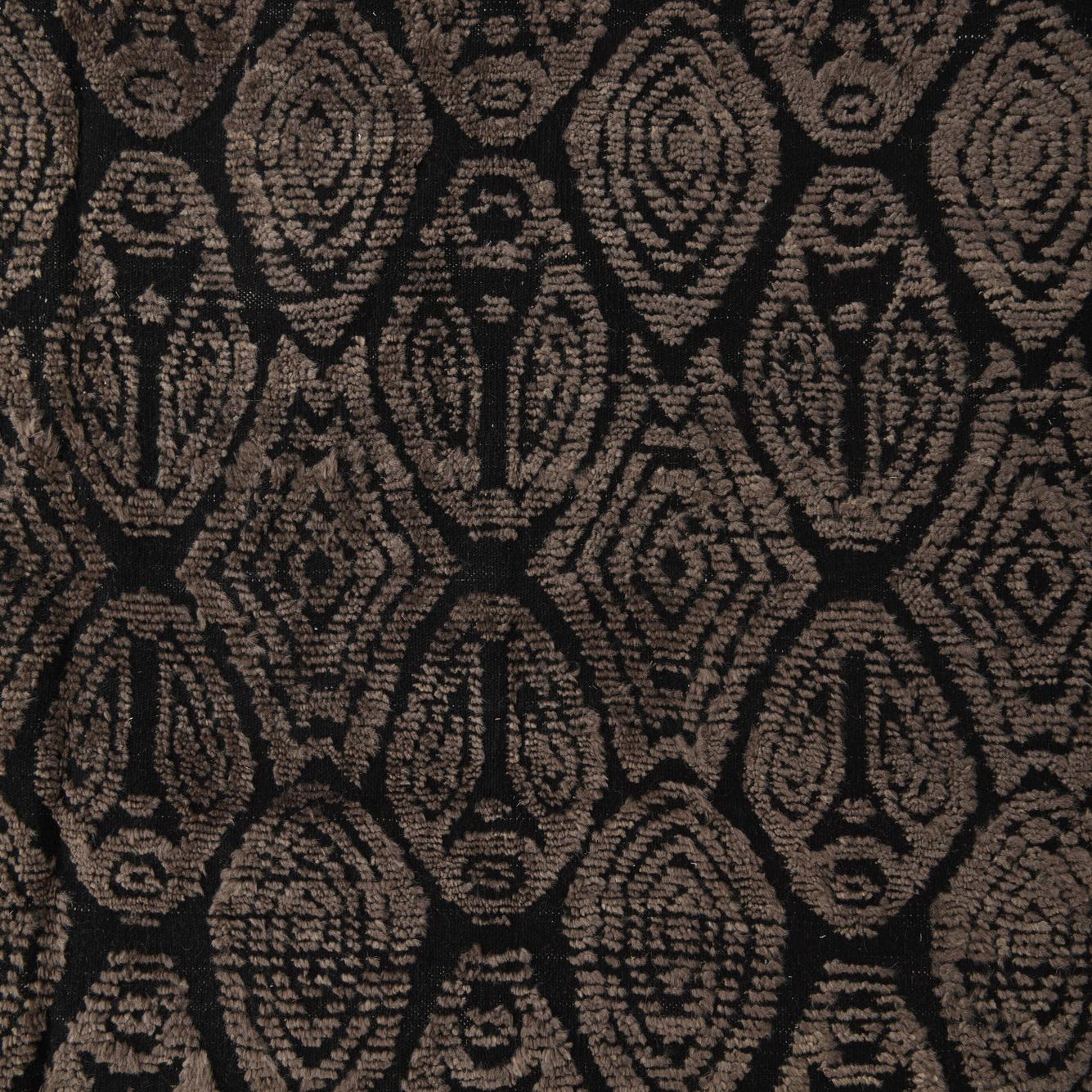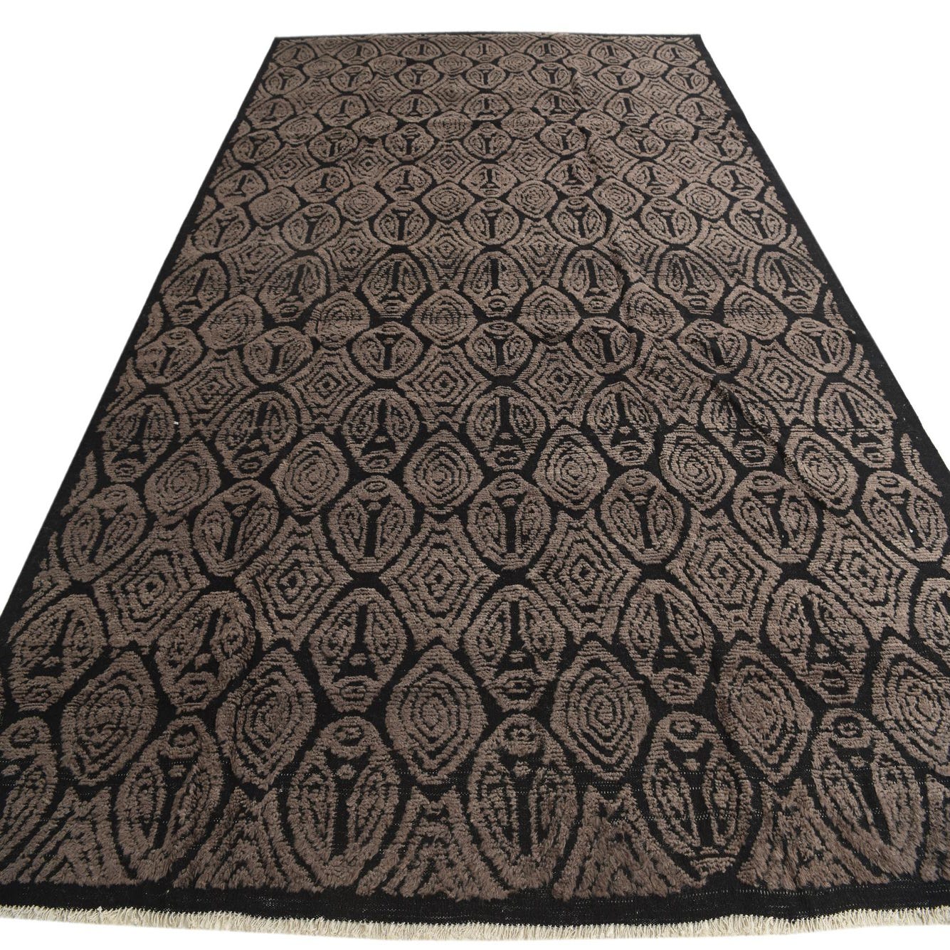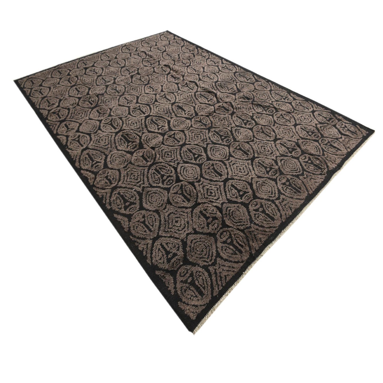 Primary color is Black. Colors in this rug include: Black, Brown.