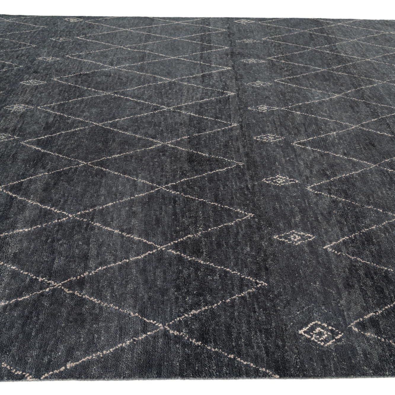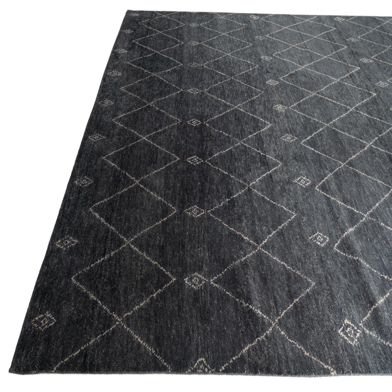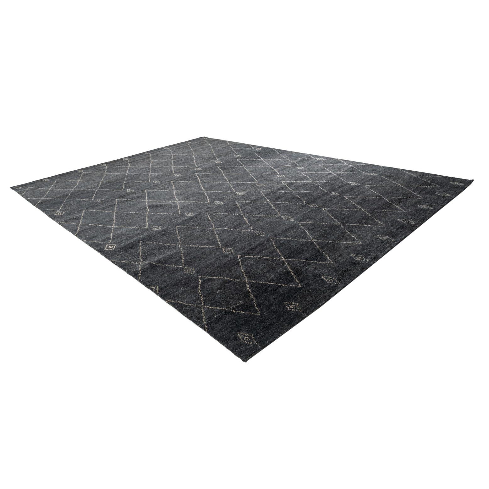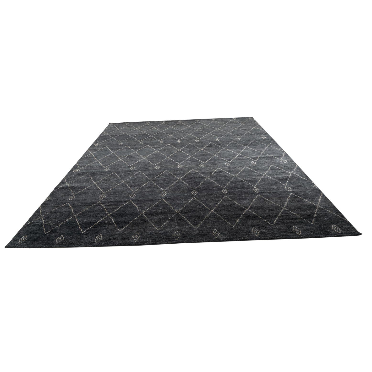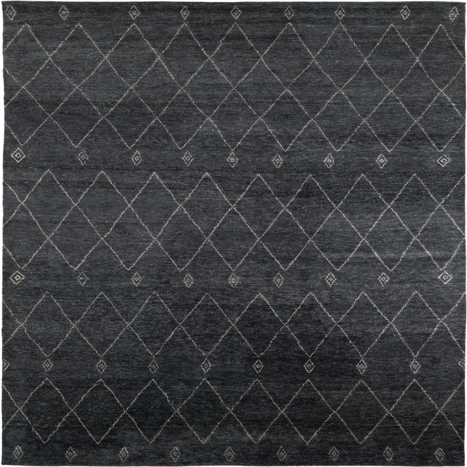A 9x12 rectangular Darya rug in black with a modern diamond pattern, suitable for a living room.