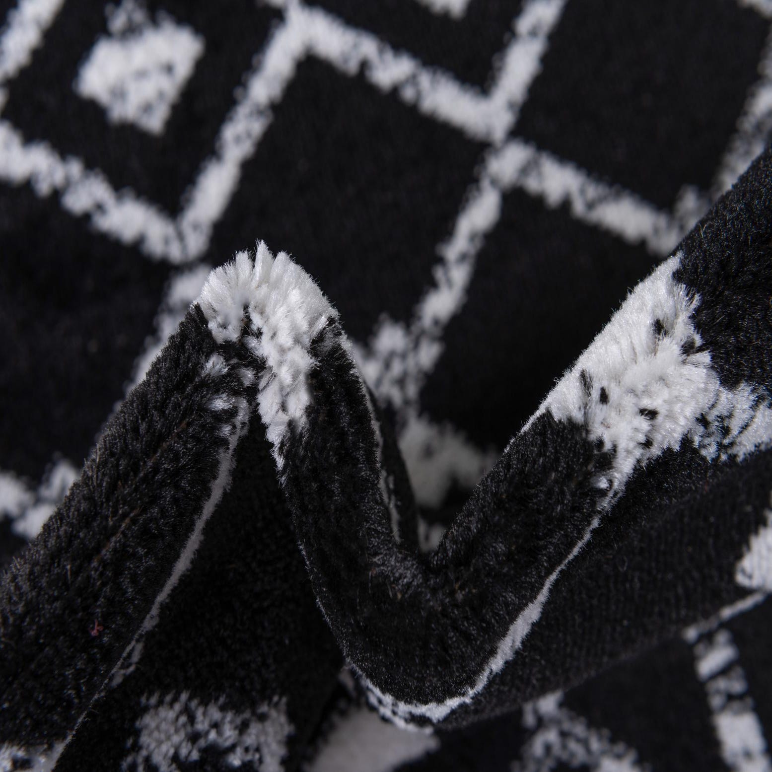 This rug works well in modern, minimalist, or industrial interiors where graphic black-and-white contrast adds definition. Place it to anchor a living room seating area, under a rectangular dining table, or layered at the foot of a bed to add structure without overpowering other finishes. Pair it with warm woods, matte metals, or natural linens for balance, or use it in a monochrome scheme to create a clean, graphic focal point.
