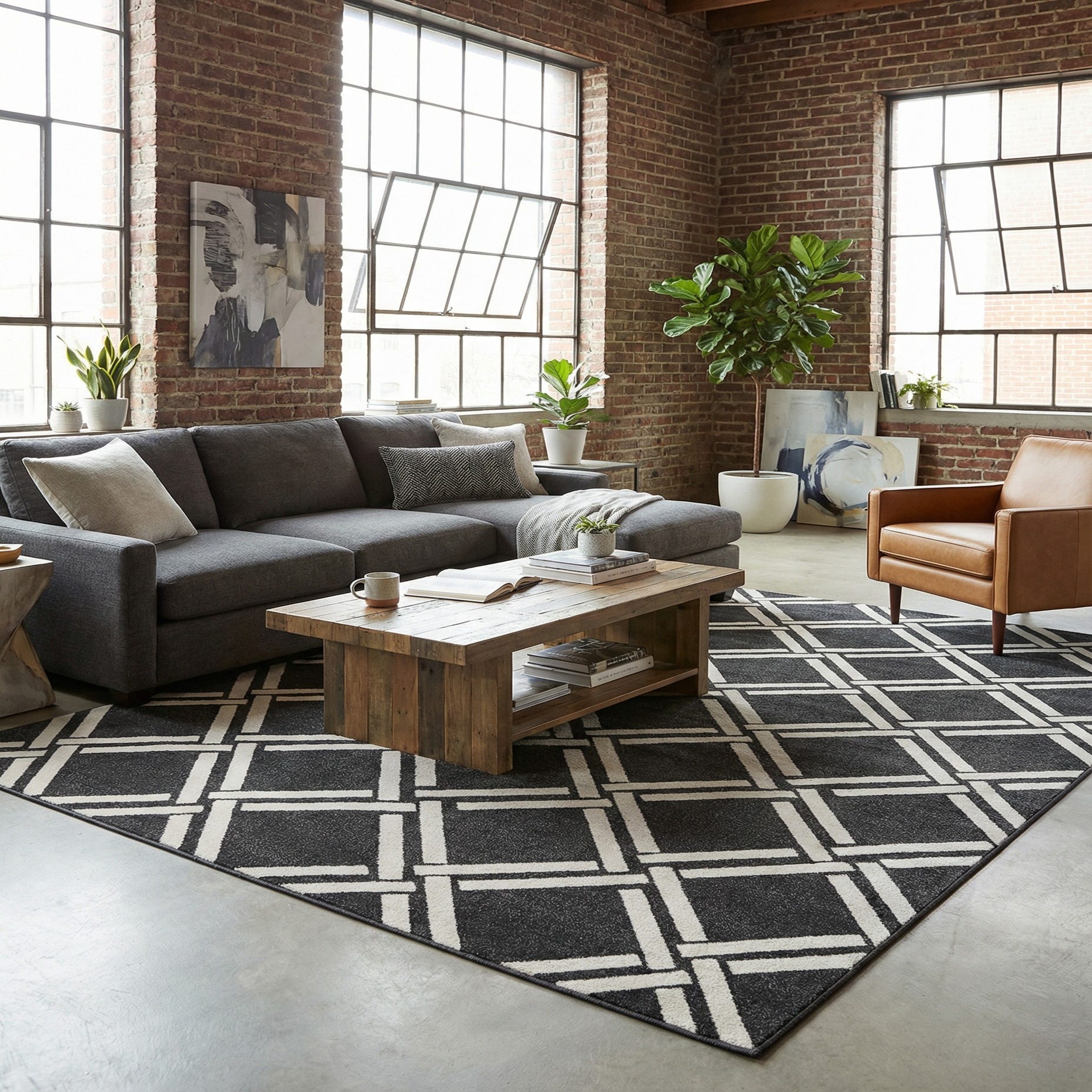 This rug pairs well with mid-century and modern furnishings—place it under a sofa to anchor a living room, beneath a dining table to add visual structure, or in a home office to introduce pattern without distraction. It also works with natural wood tones, matte metal accents, and a neutral color palette for a refined, layered interior.