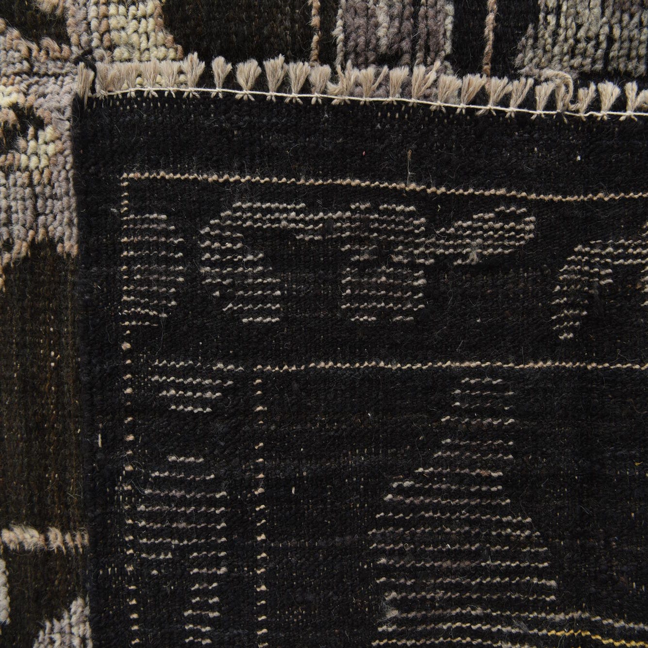 Primary color is Black. Colors in this rug include: Black, Brown, Gray, Ivory, Yellow.
