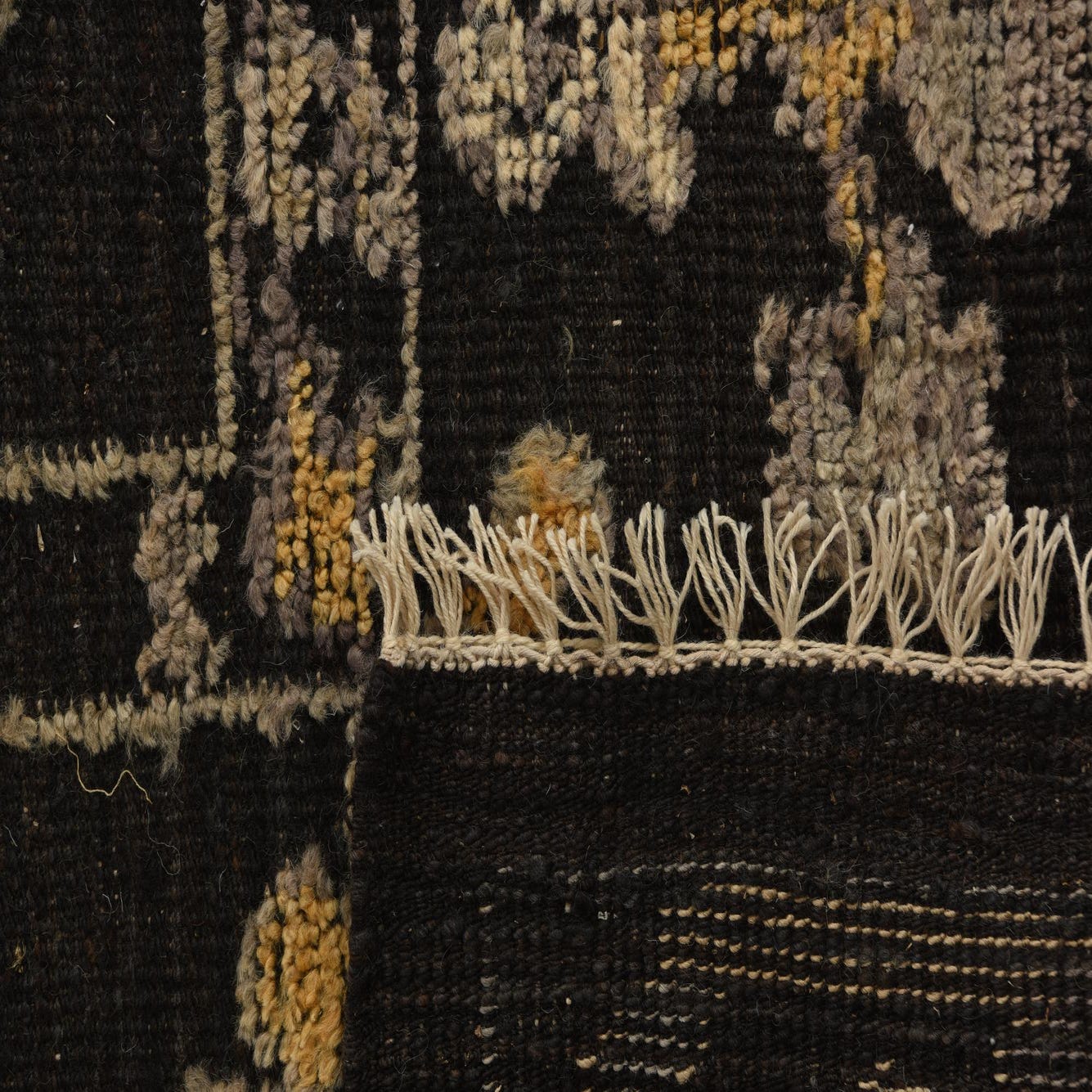 Primary color is Black. Colors in this rug include: Black, Gray, Ivory, Yellow, Light Brown.