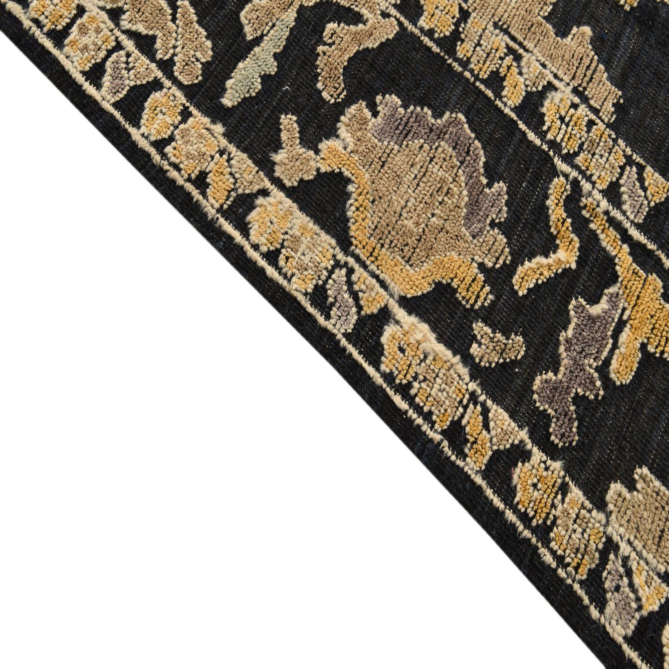 Primary color is Black. Colors in this rug include: Black, Beige, Gray, Light Blue, Light Brown, Ivory, Yellow.