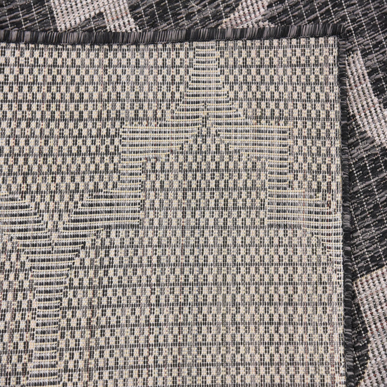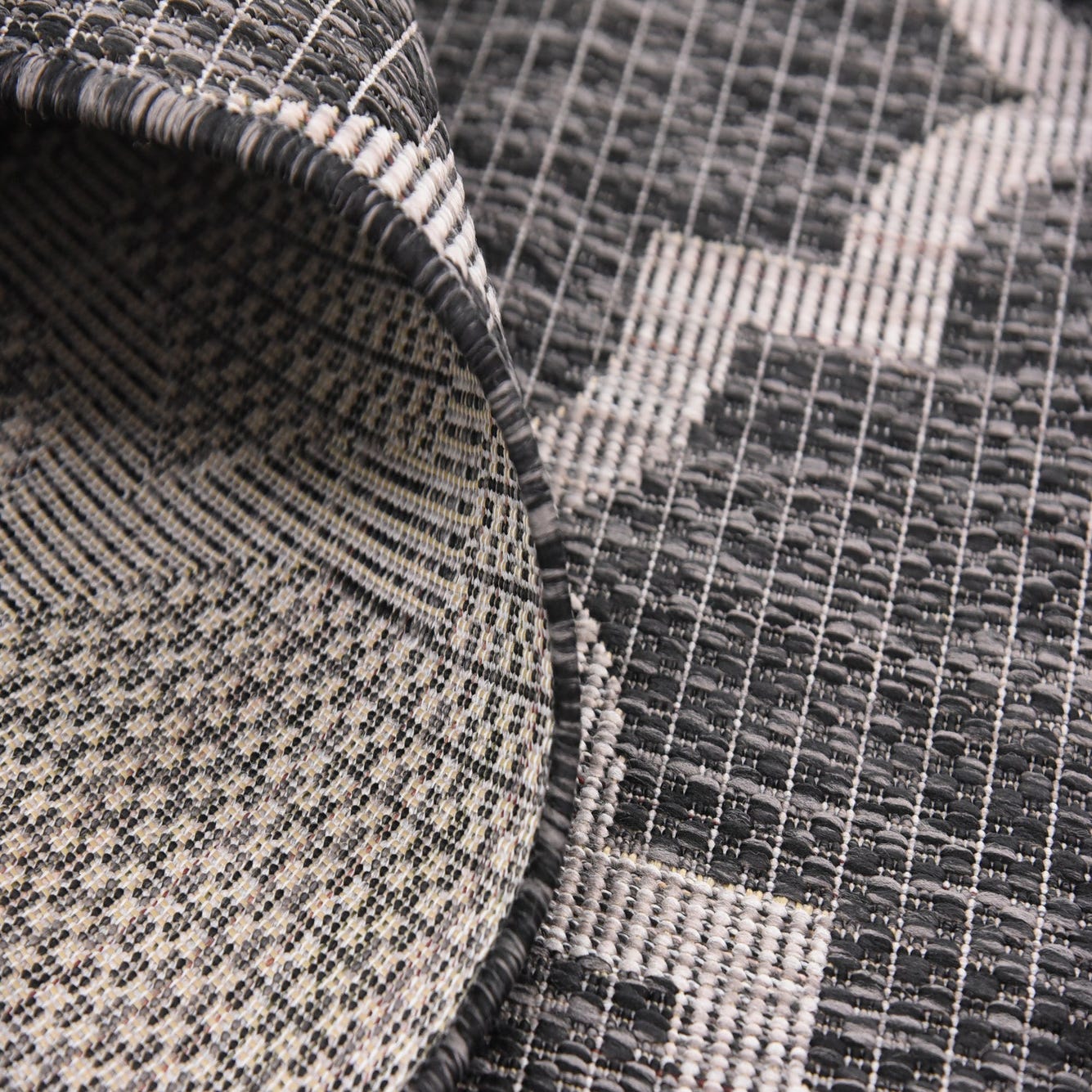 This two-tone design works easily across a range of settings: pair it with light rattan and linen for a relaxed porch or sunroom, combine it with black metal and leather for an urban living area, or use it under a dining table to add pattern without overwhelming the room. Its neutral palette and clear geometry make it a good anchor for contemporary, transitional, or coastal-inspired schemes, and it layers nicely with textured cushions and natural wood tones.