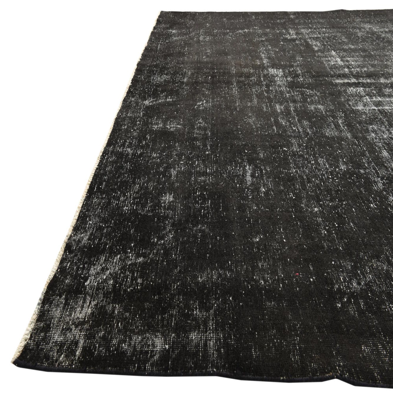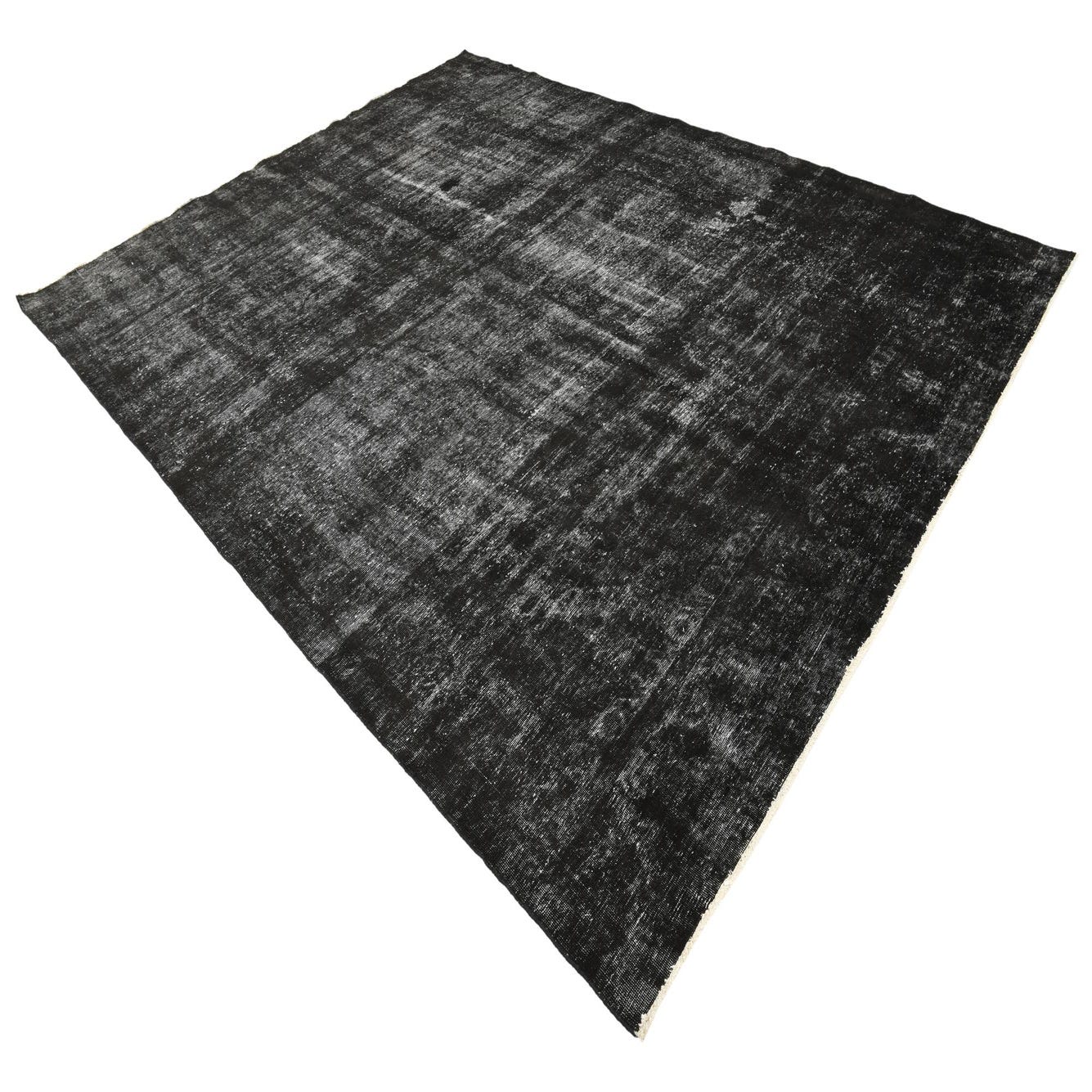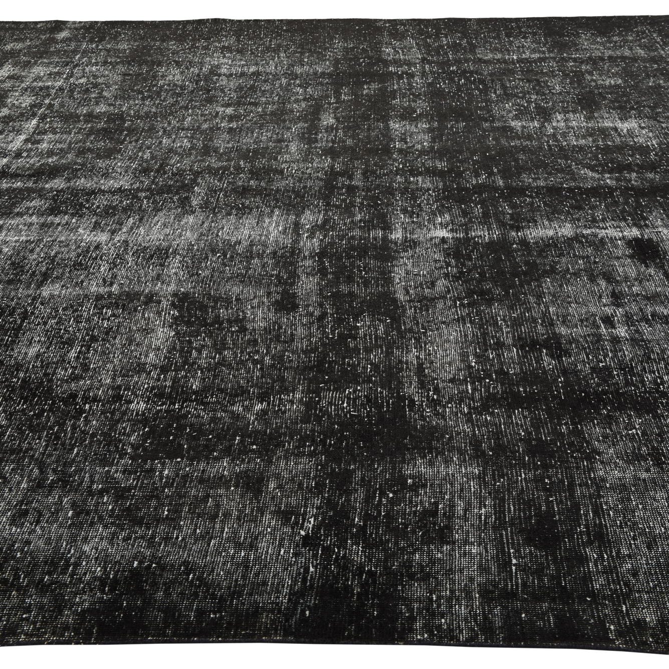 This Ultra Vintage collection rug brings a sophisticated and understated aesthetic to any living space with its hand-knotted construction of 100% wool. The piece measures 9x12 feet, offering ample coverage for a variety of rooms. It features a beautifully distressed pattern that gives the impression of timeworn elegance, with black and ivory hues blending seamlessly on a black background, creating a compelling and versatile visual texture.