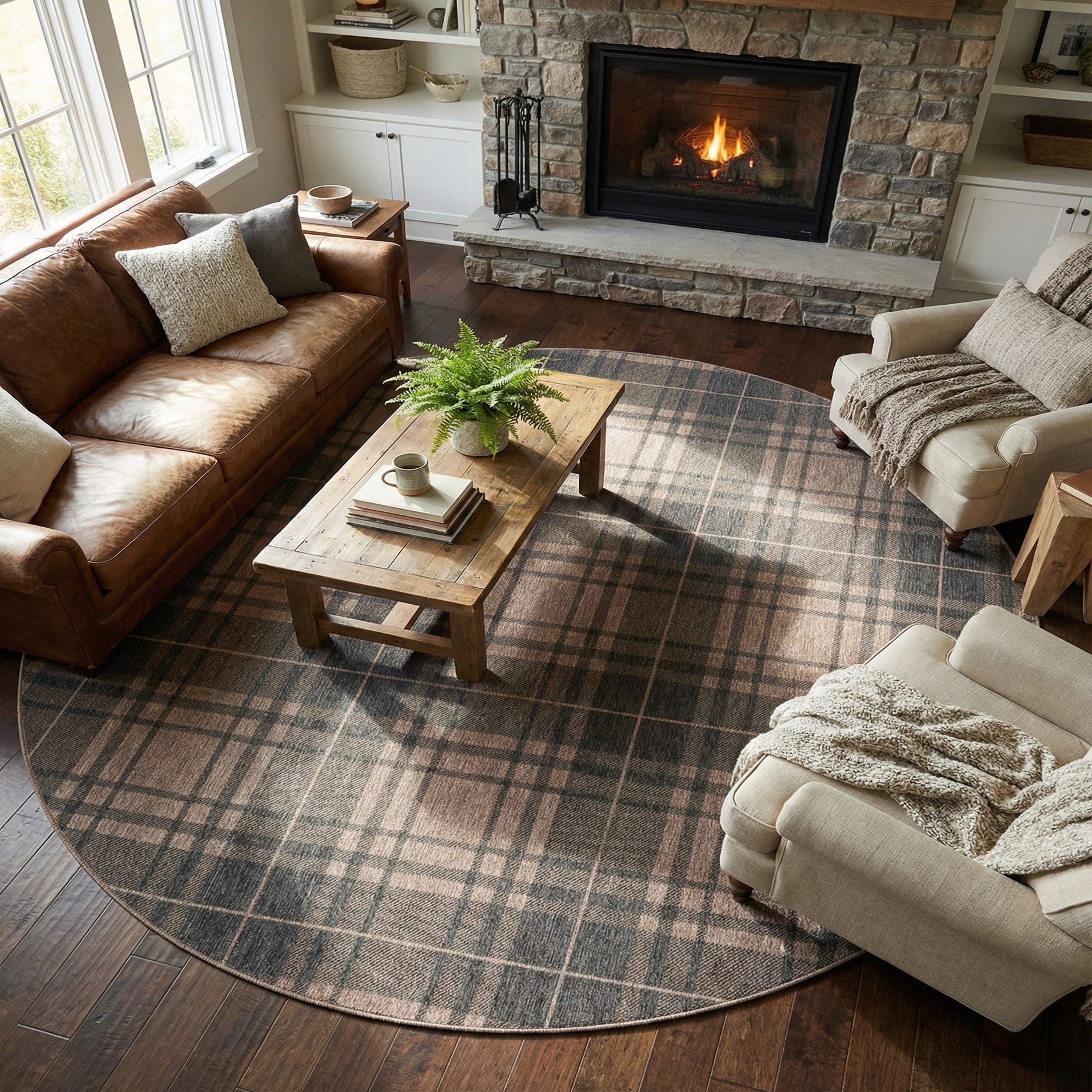 10' x 10' Washable Checkered Indoor / Outdoor Round Rug