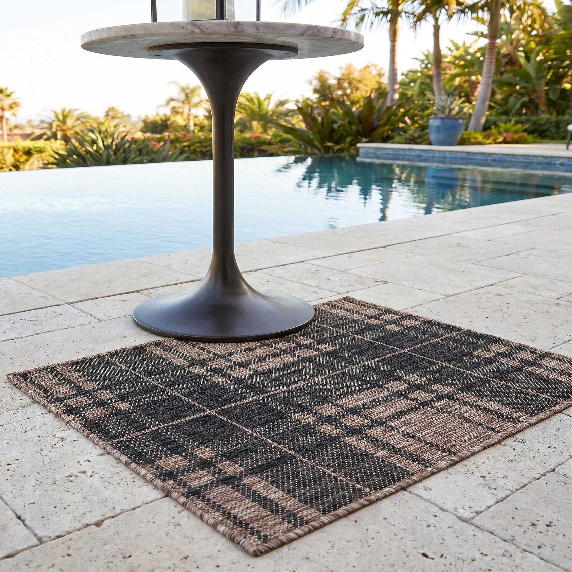 2' x 3' Easy-Clean Checkered Indoor / Outdoor Rug