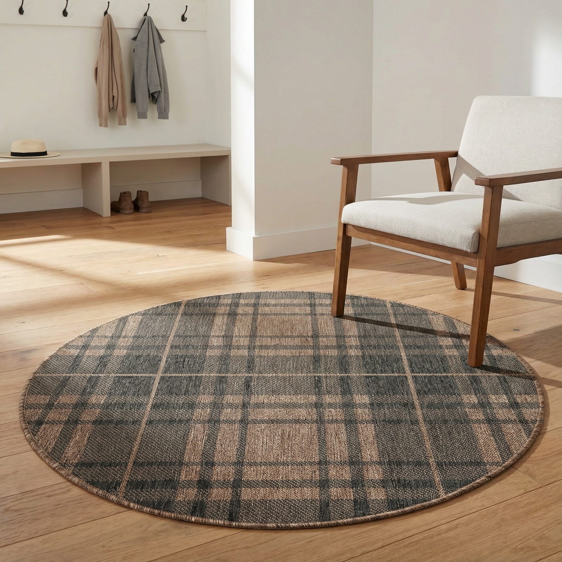 4' x 4' Washable Checkered Indoor / Outdoor Round Rug