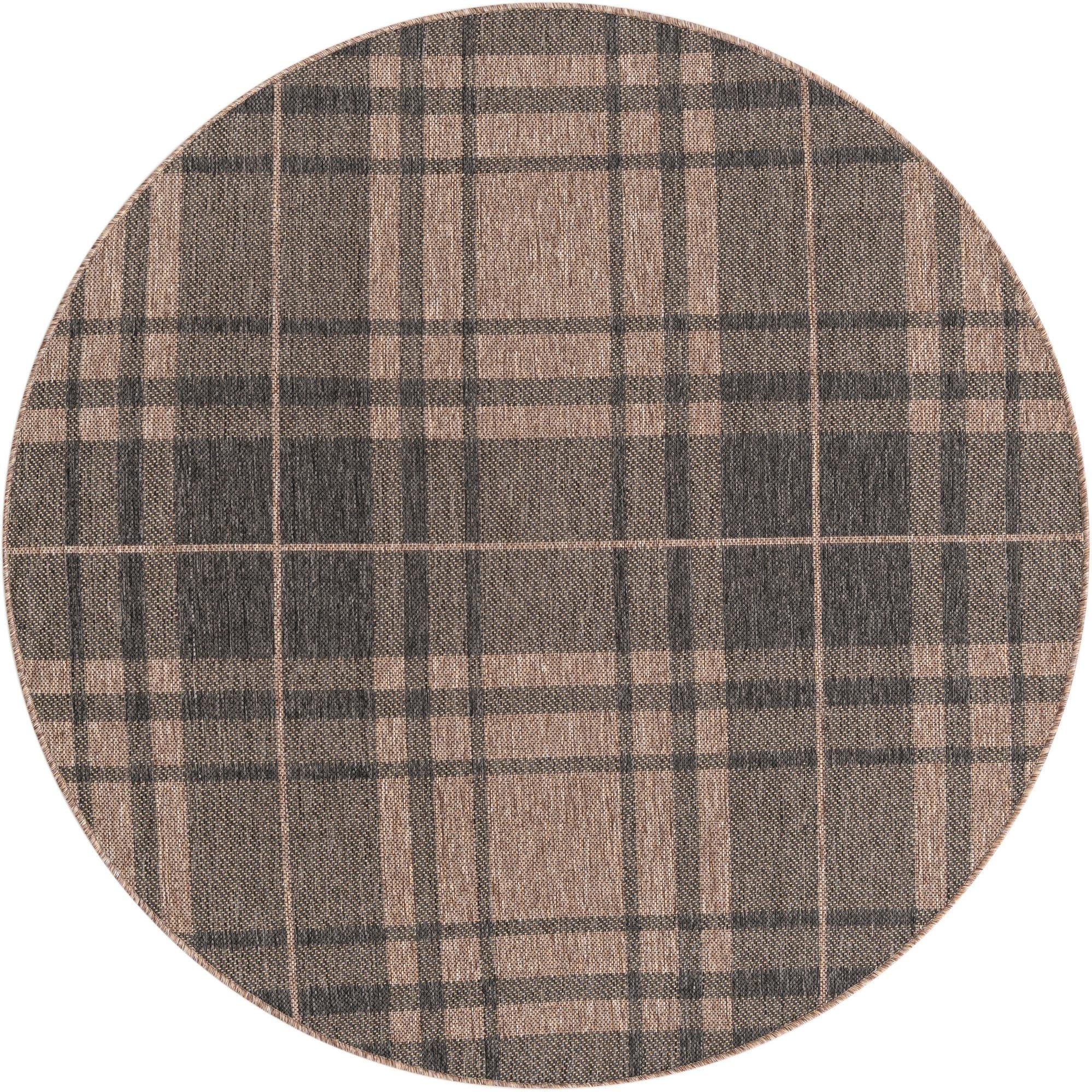5' 3 x 5' 3 Washable Checkered Indoor / Outdoor Round Rug