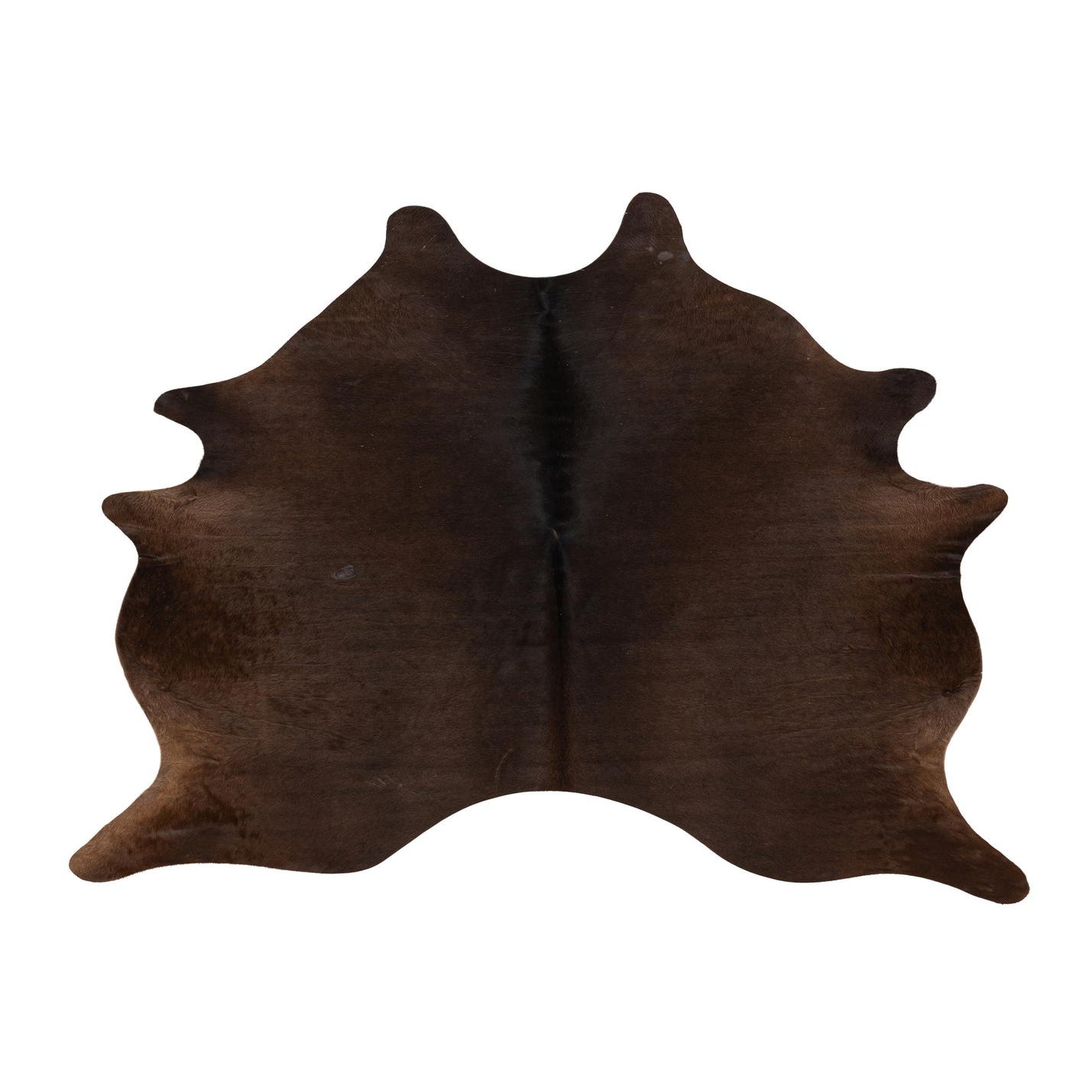 A 6' 2 x 6' 5 square cowhide rug in shades of black and brown, featuring a natural, irregular shape and flat pile.