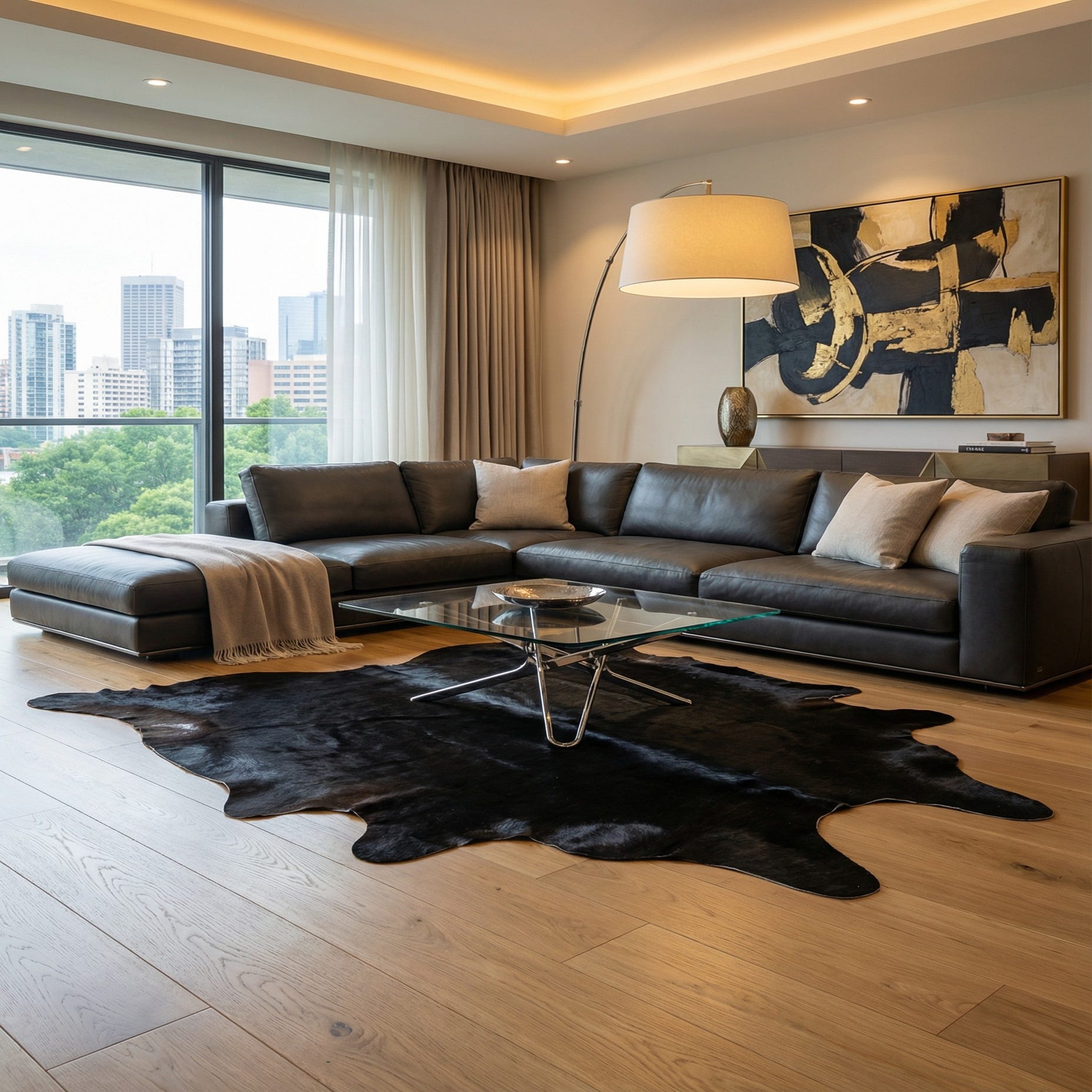 6' 4 x 6' 5 Cowhide Leather Square Rug