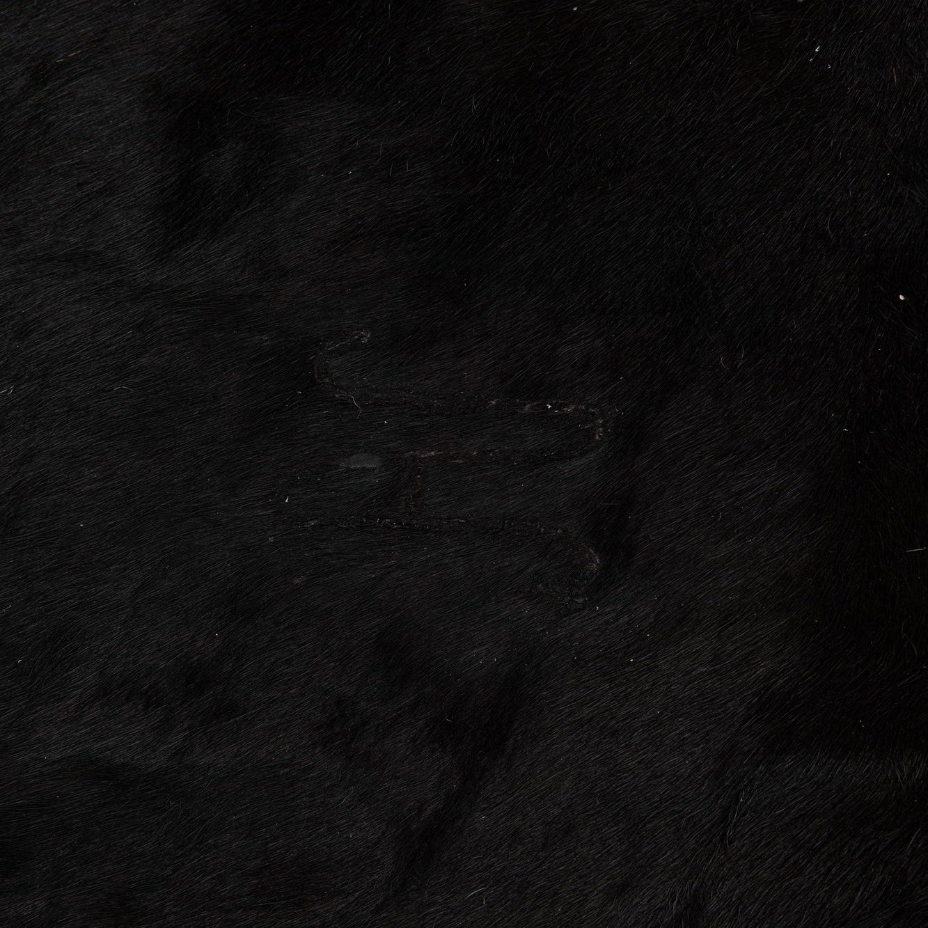 Handmade from cowhide and leather, this hide rug keeps the natural, irregular silhouette of the pelt while presenting a clean, unfussy surface. The short, velvety hair-on-hide gives a soft, low-pile touch with a subtle sheen; running your hand across it reveals a smooth nap that transitions to the firmer leather along the edges. The colorway is primarily deep black with brown undertones and natural tonal variation that adds depth without a defined pattern, including a faint center seam that highlights its authentic construction.