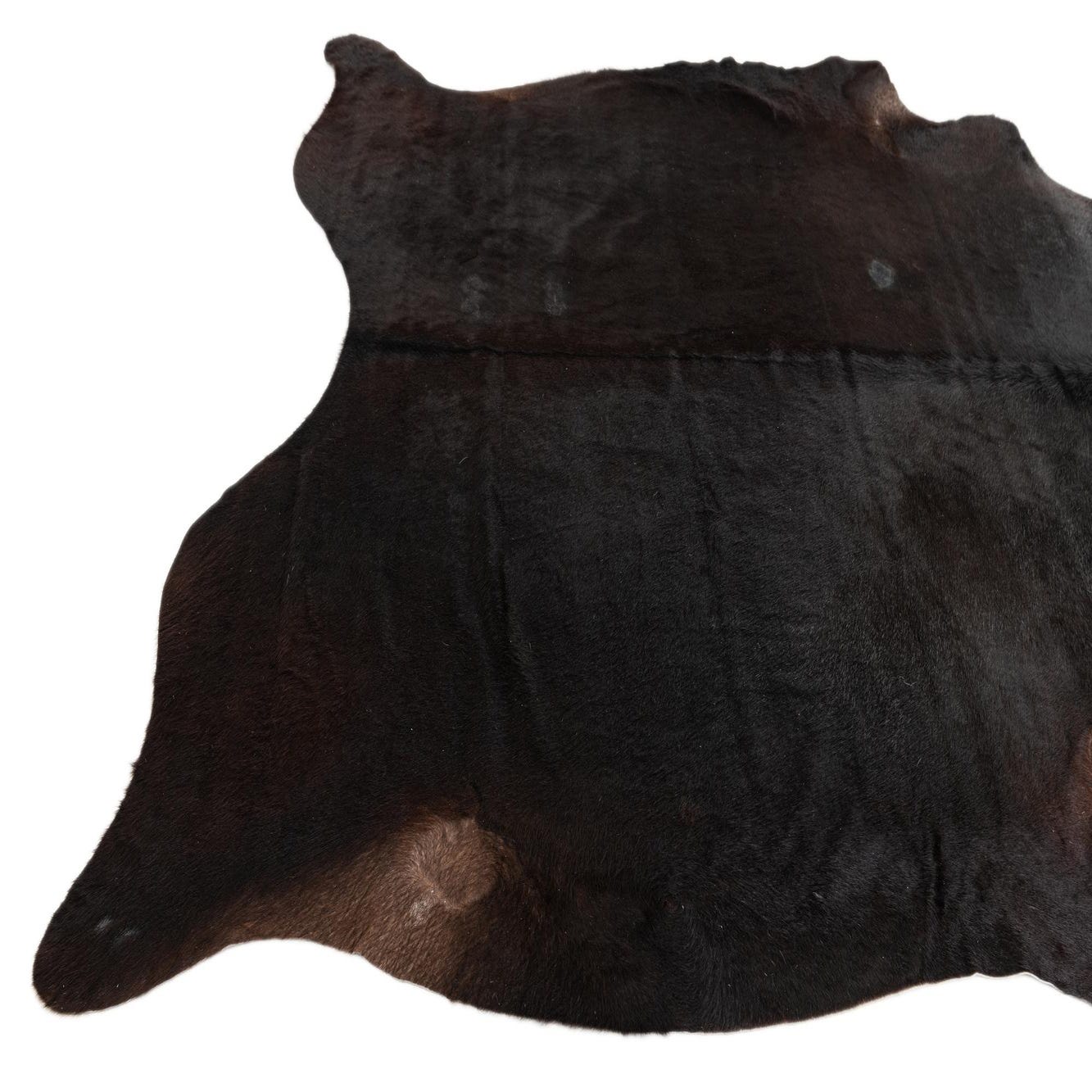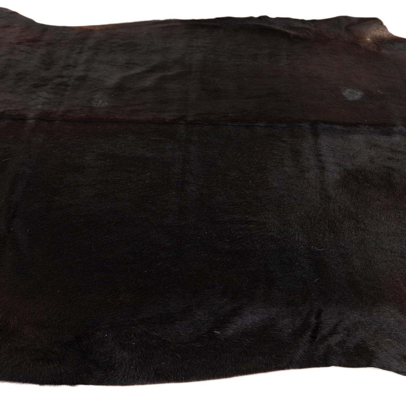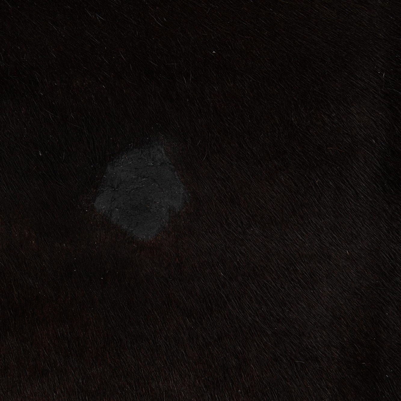 A 6x9 rectangular black cowhide rug with a natural, irregular shape, ideal for a modern living room.