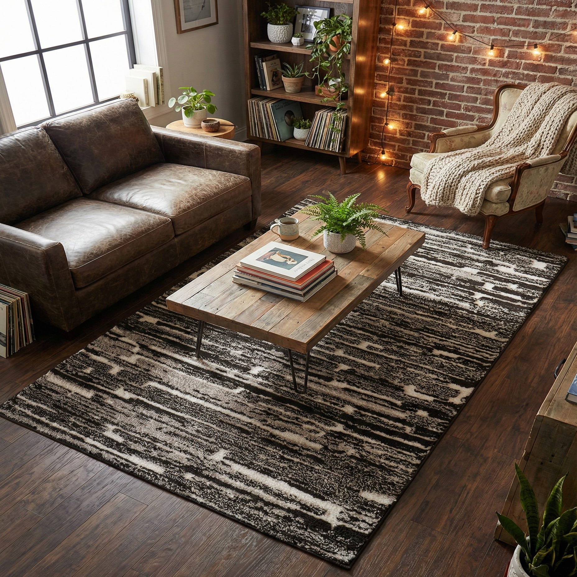The contemporary palette and graphic motif fit well in modern, minimalist, or industrial interiors. Use it to anchor a living room seating area, place it under a coffee table, add warmth beside the bed, or bring subtle pattern to a home office. Pair with leather or metal furniture, crisp white walls, or layered neutral textiles for a balanced, modern look.