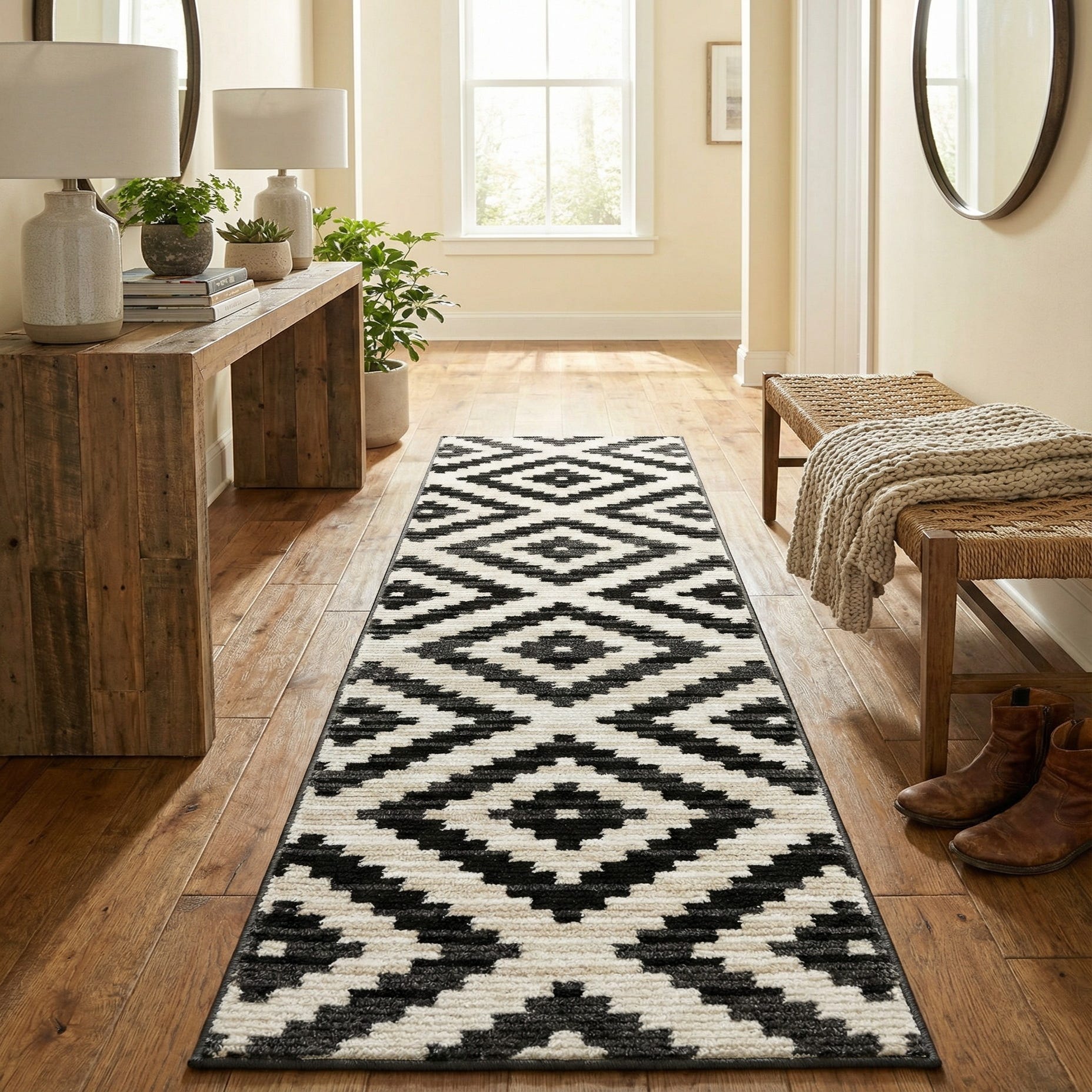 Primary color is Black and Ivory. Colors in this rug include: Black and Ivory, Beige.