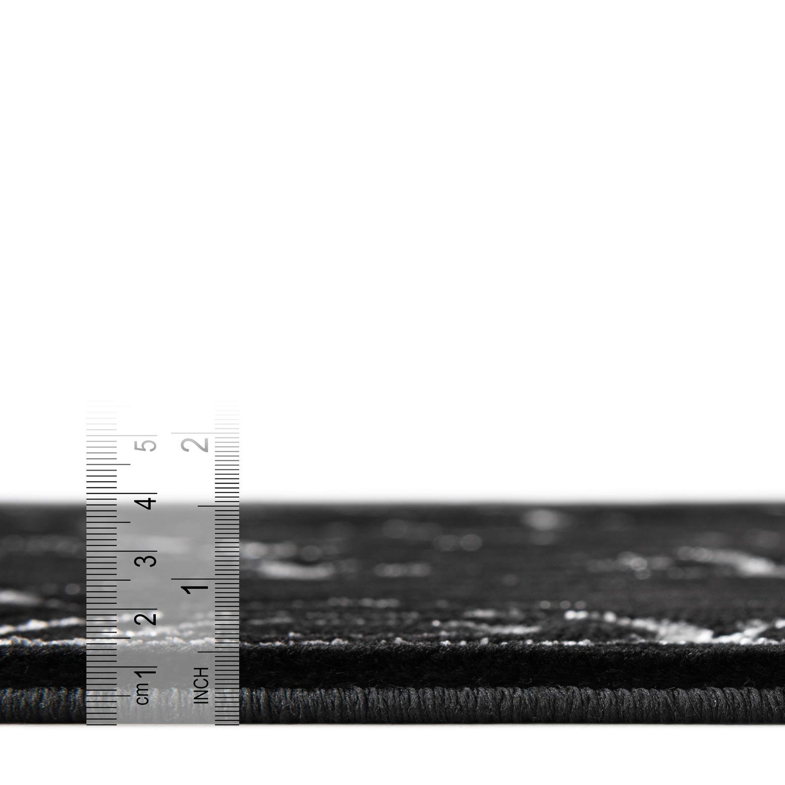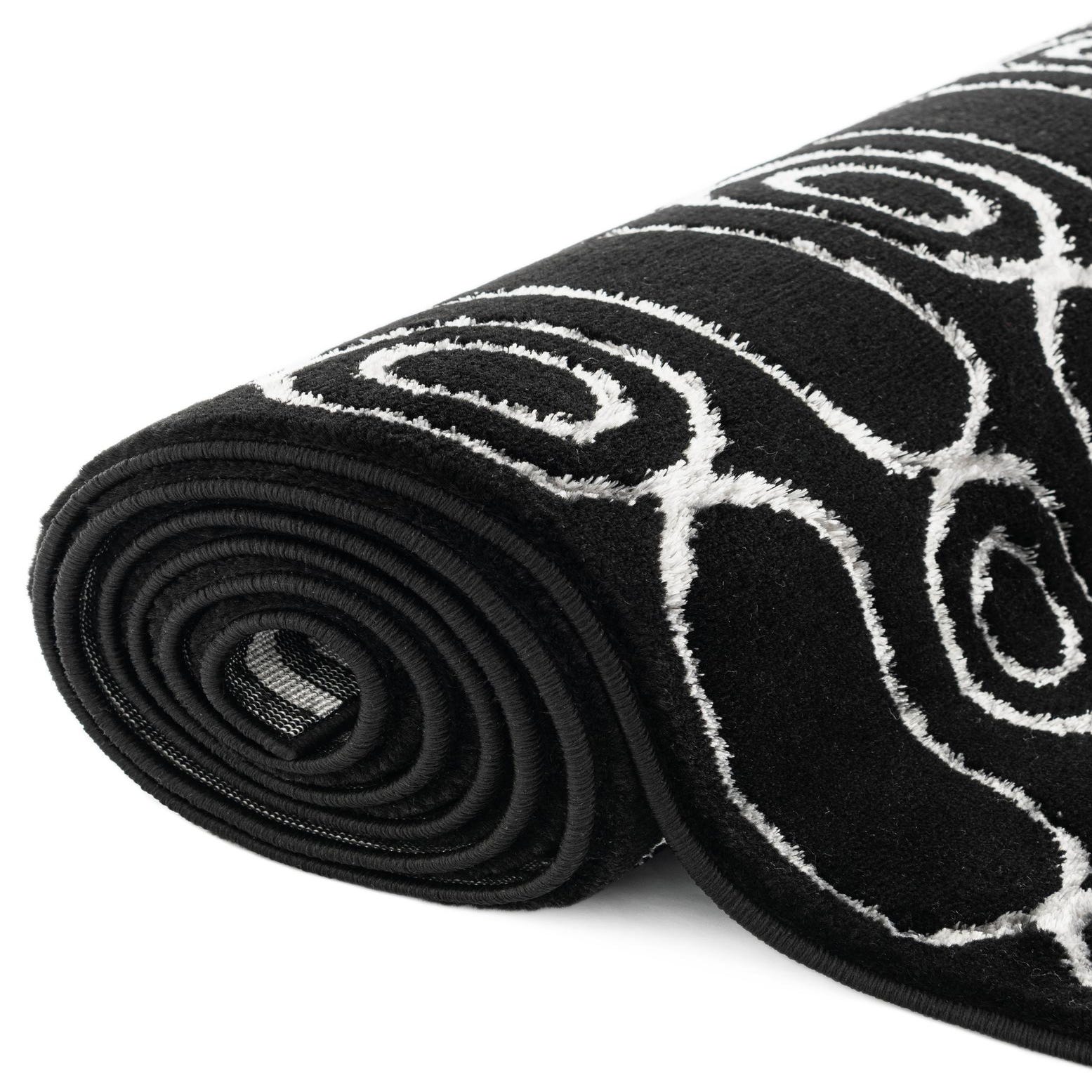 Machine-made from 70% polypropylene and 30% polyester, the rug offers a low-profile, soft hand that feels pleasant underfoot while remaining resilient for regular use. Run your hand across the surface and you’ll notice the subtle texture of the pattern lifting against the smooth background. This piece pairs beautifully with minimalist or mid-century modern furniture, monochrome or metallic-accented interiors, and clean-lined living and dining spaces. It also works well as a grounding anchor in a home office or entryway where a graphic, contemporary statement is desired.