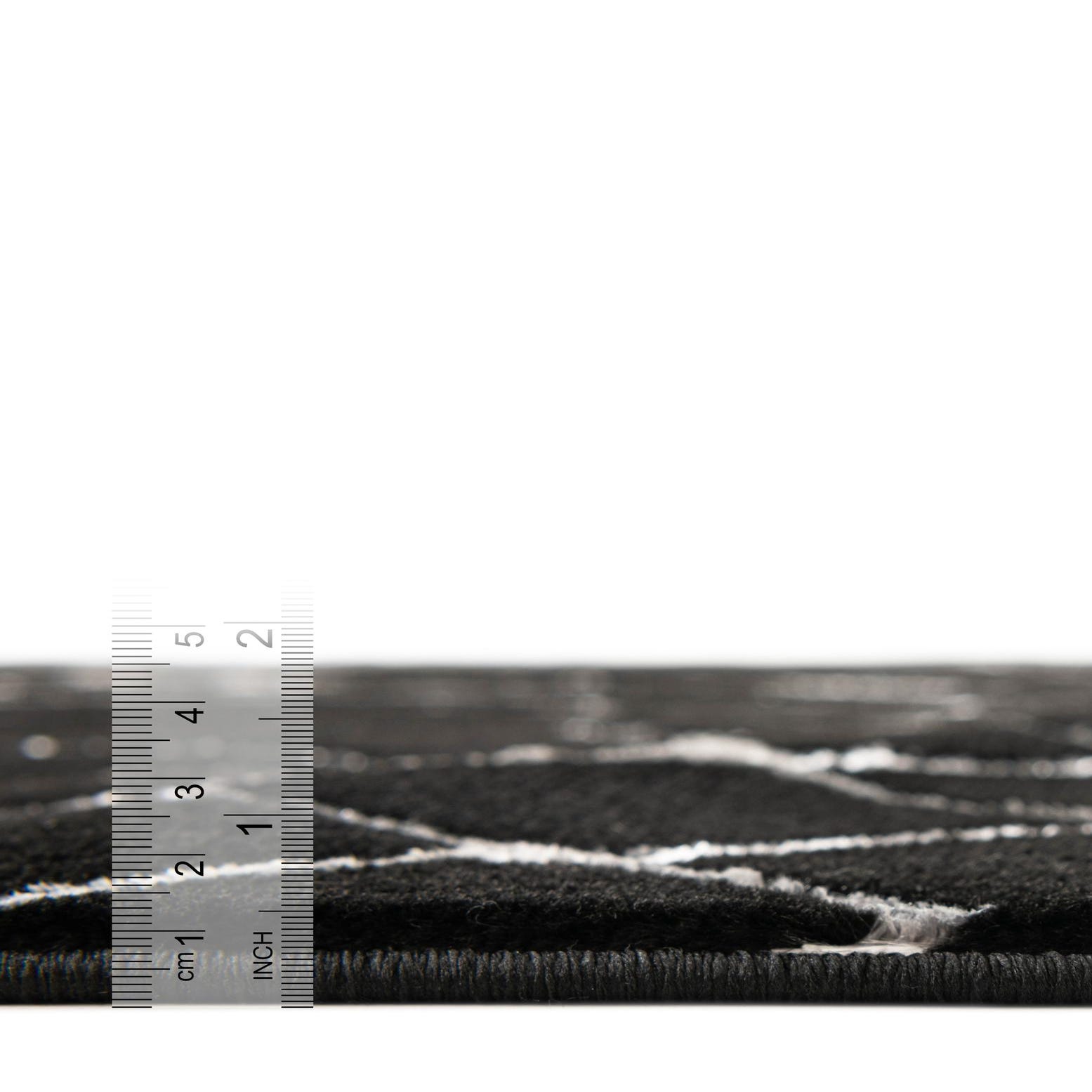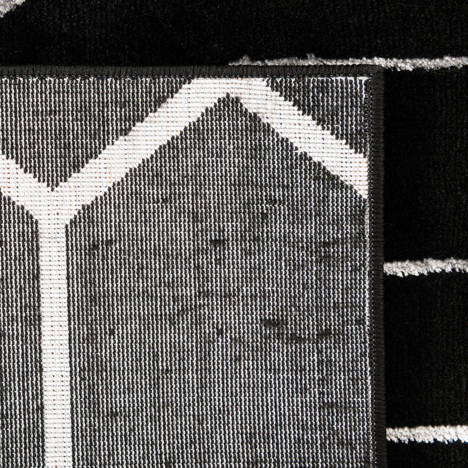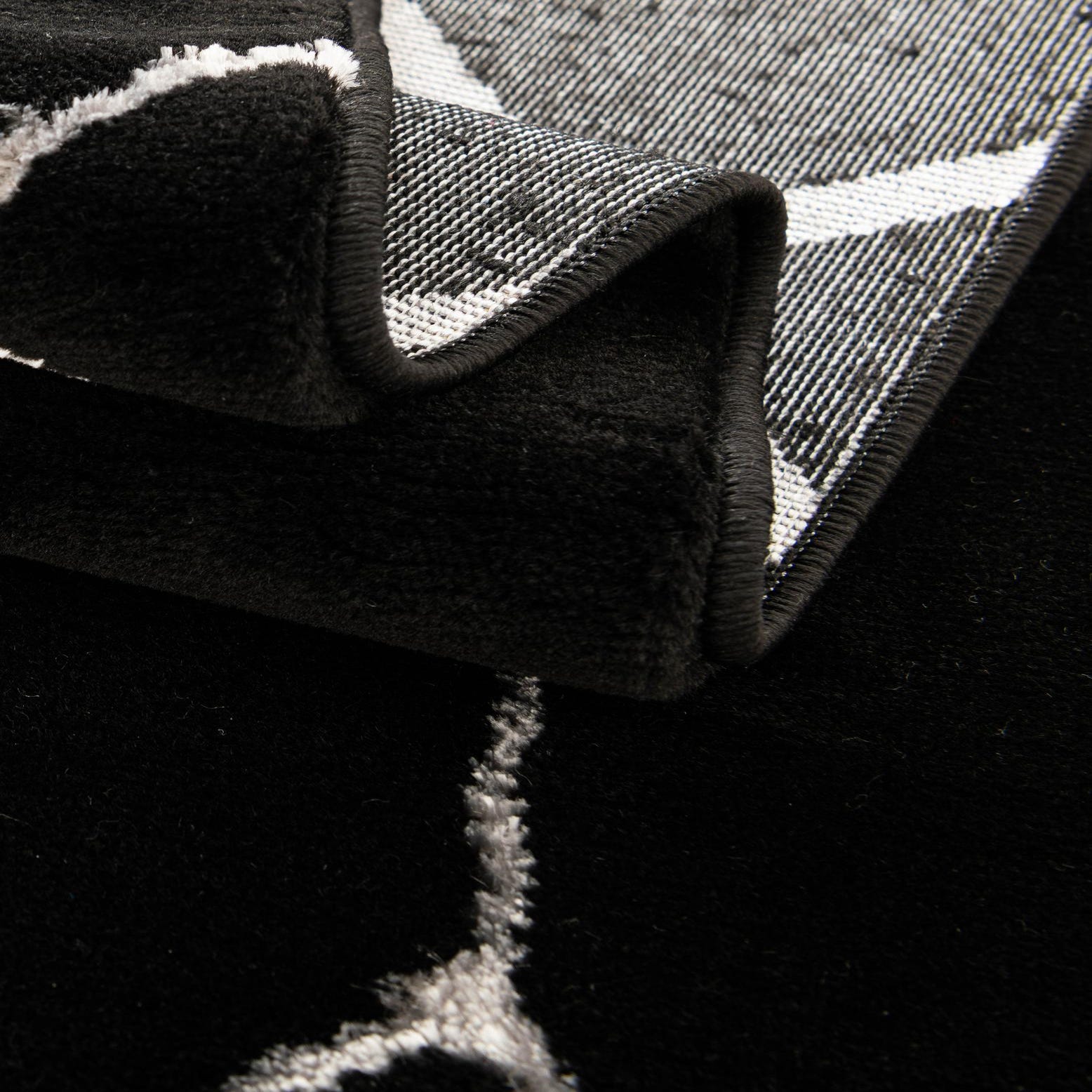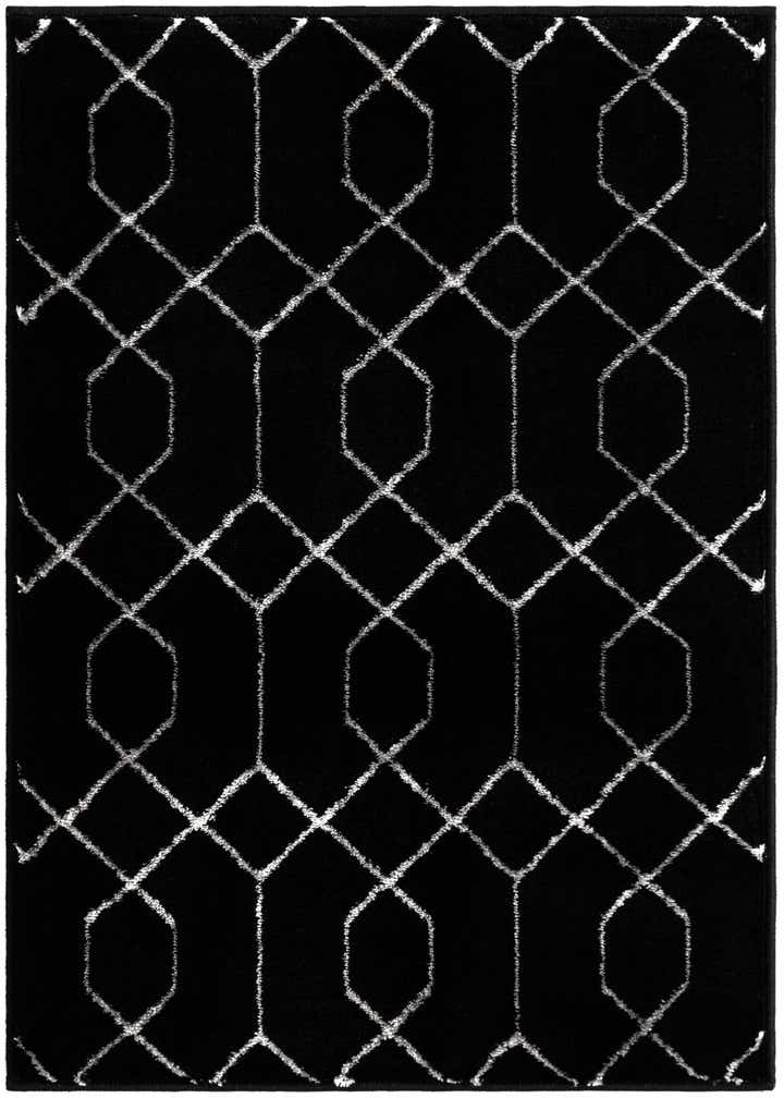 A 2x3 rectangular Marilyn Monroe Glam Trellis rug featuring a modern black background with a silver geometric trellis pattern.