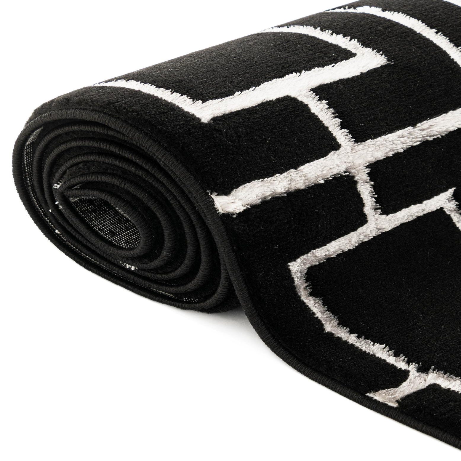This piece pairs naturally with contemporary and modern glam interiors—think chrome or mirrored accents, leather seating, and lacquered surfaces. Use it to anchor a living area, place it beneath a coffee table, or layer it in a bedroom to add pattern without overwhelming the room. The black-and-silver palette also complements monochrome schemes or provides a striking counterpoint to lighter furnishings and metallic accessories.