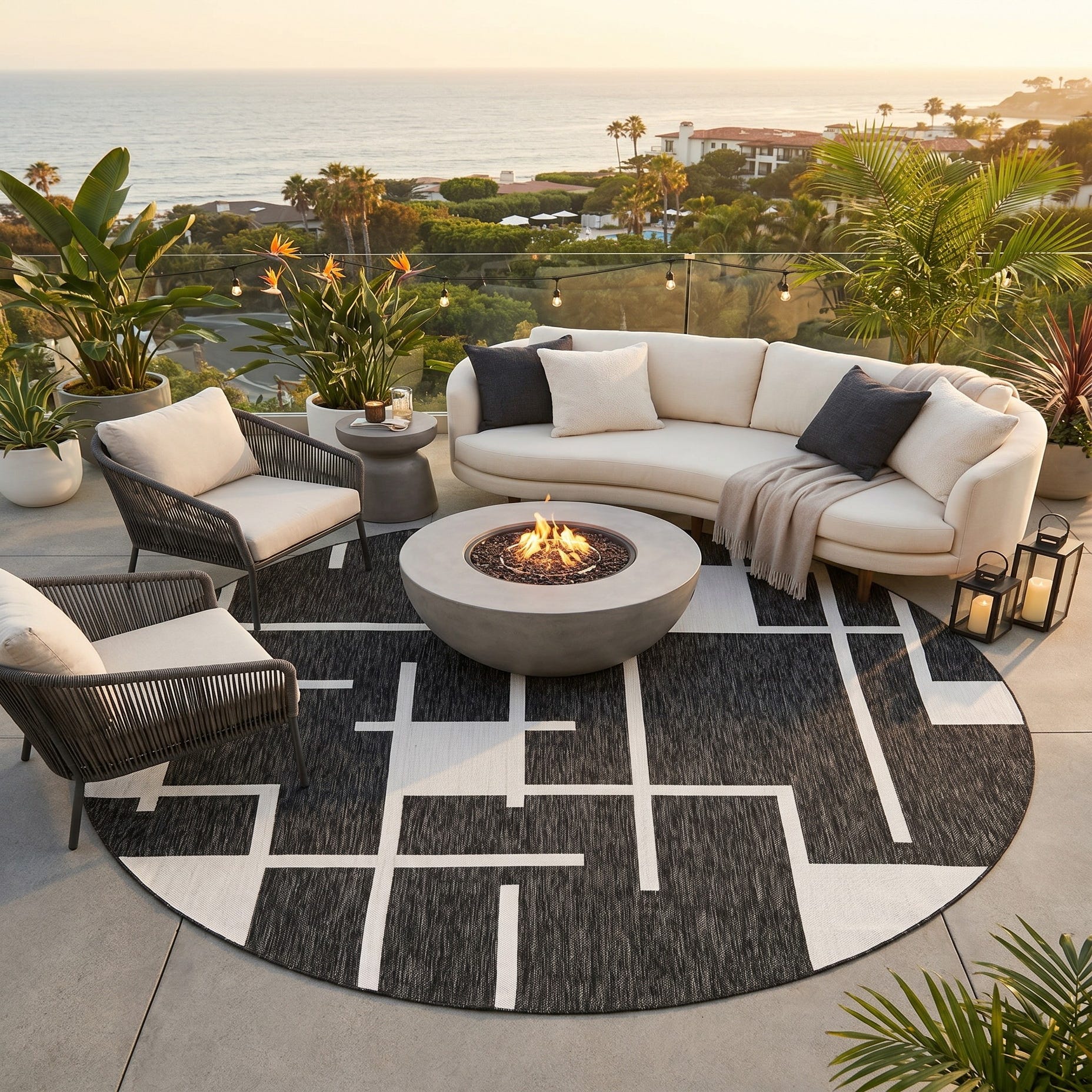 10' x 10' Easy-Clean Modern Indoor / Outdoor Round Rug