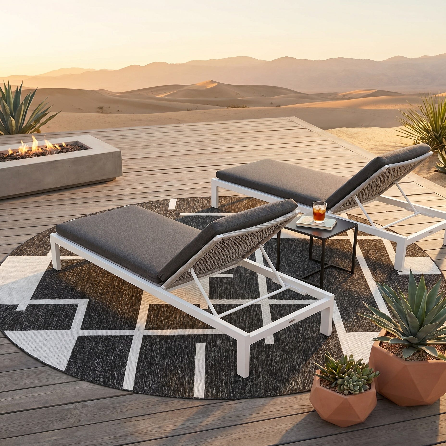 Love the contemporary look of this rug! We are so happy we chose this to accent the blue of our pool with our living area on our lanai. We still are going to add a few more pillows but love the rug to add color.
