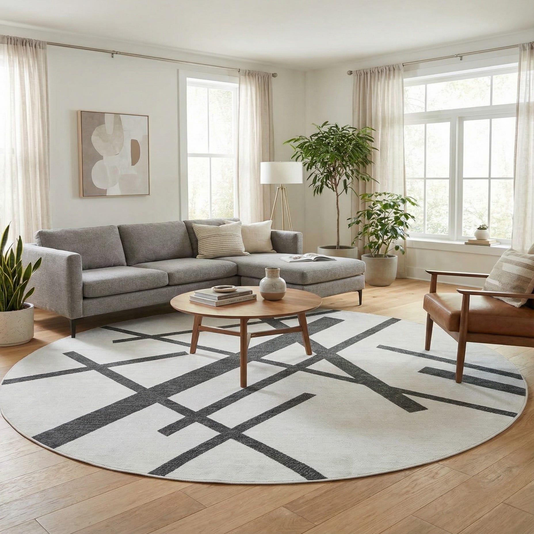 10' x 10' Washable Modern Indoor / Outdoor Round Rug