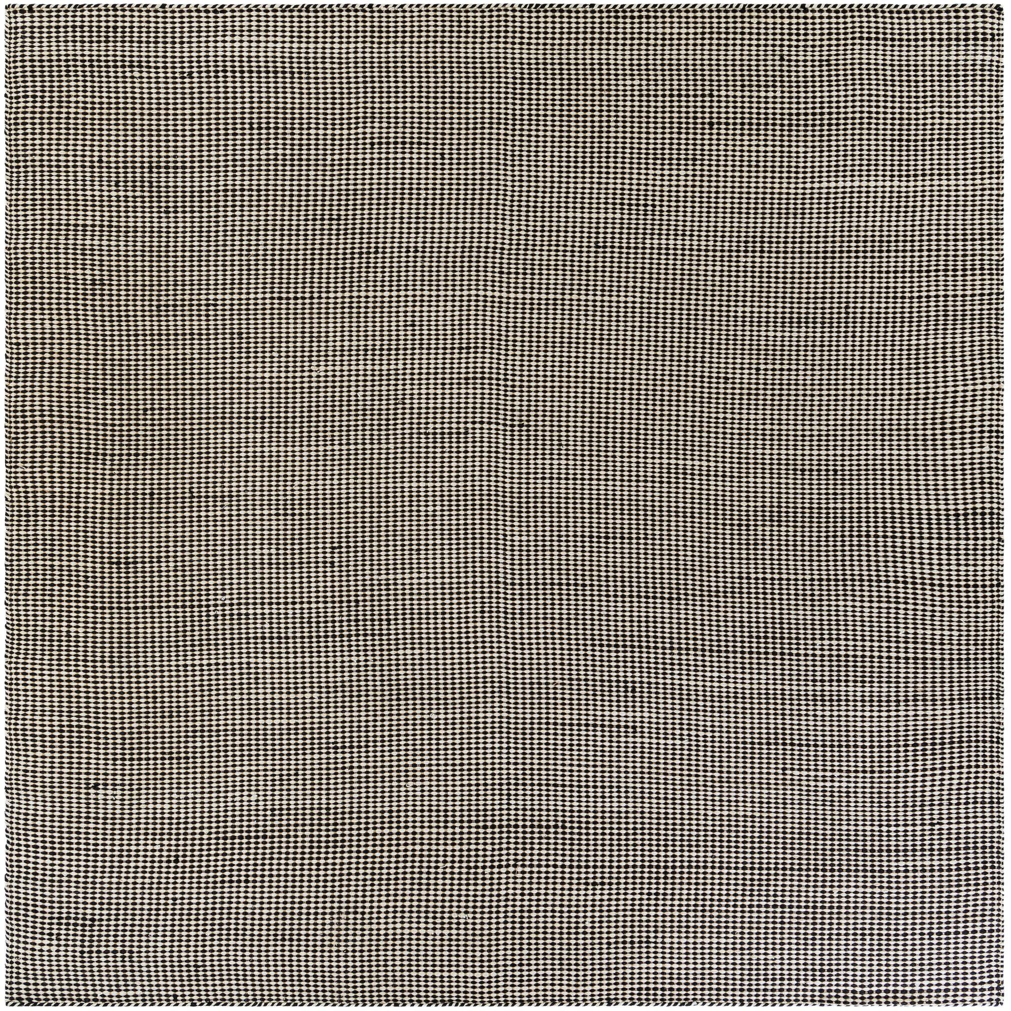 A 10'x10' square black and ivory modern jute area rug with a textured, flatweave pattern.