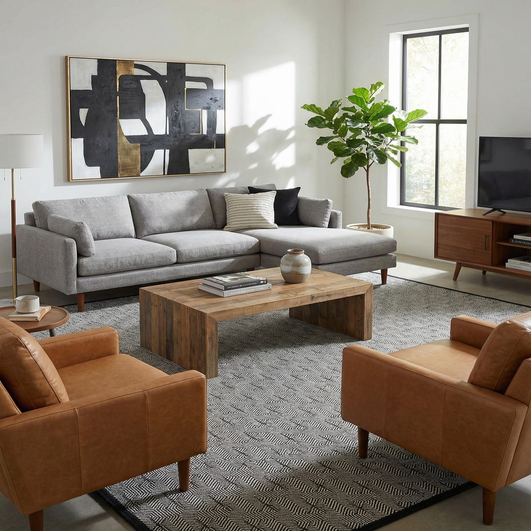 Works well in contemporary and transitional interiors where a bold but controlled pattern is needed: place it beneath a sectional or coffee table to anchor a living area, use it to define a home office or a minimalist dining space, or pair it with mid-century modern furniture for a striking contrast. It also complements warm wood tones, leather accents, and metallic finishes, and provides a strong visual base for black-and-white gallery walls or Scandinavian-inspired rooms.