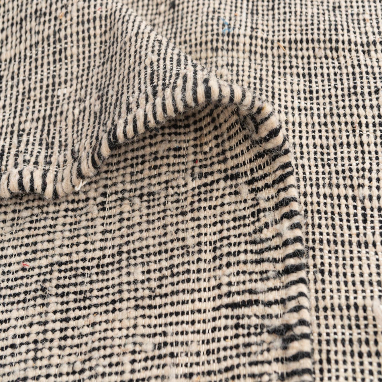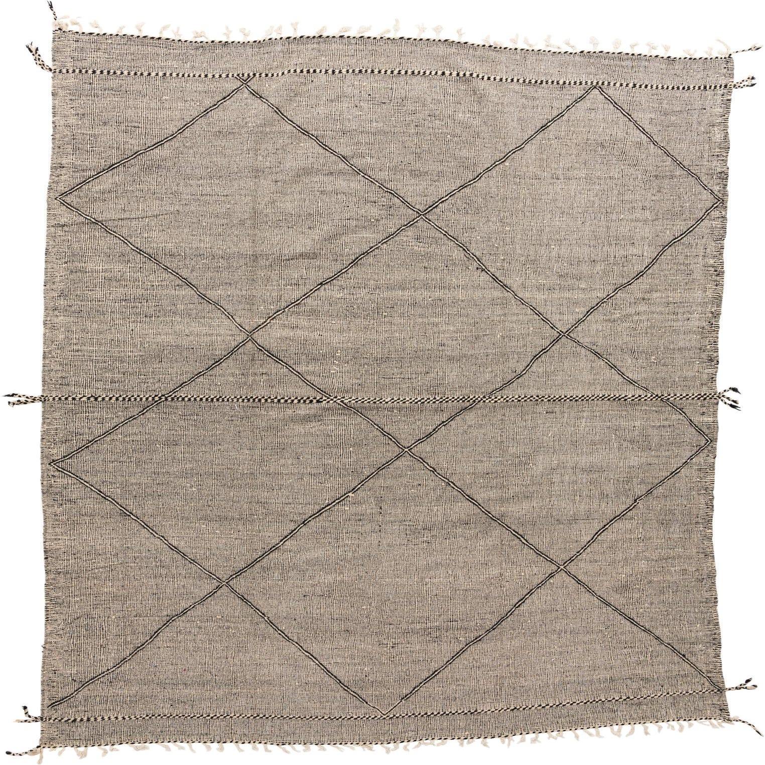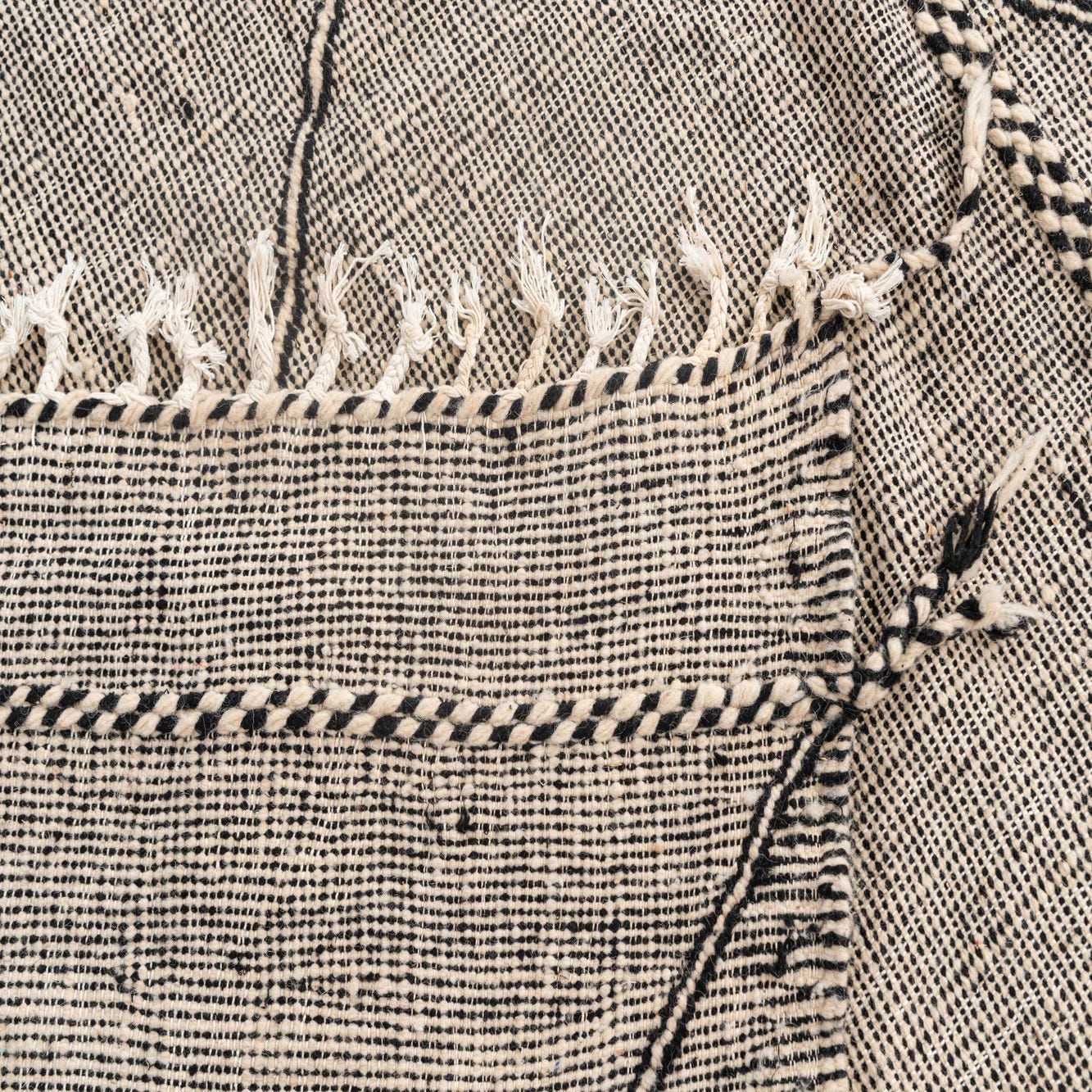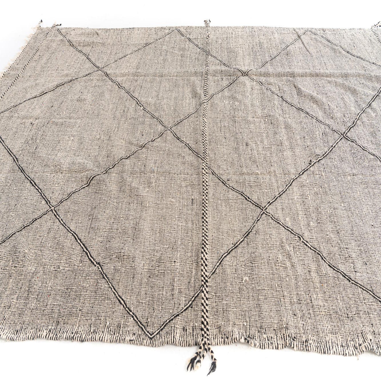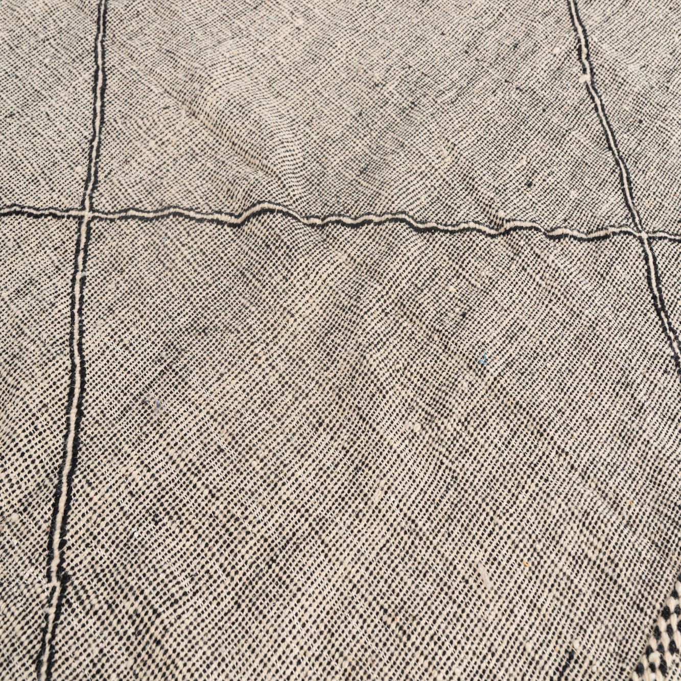 A 10x13 rectangular black and white tribal wool shag rug with a modern geometric diamond pattern.