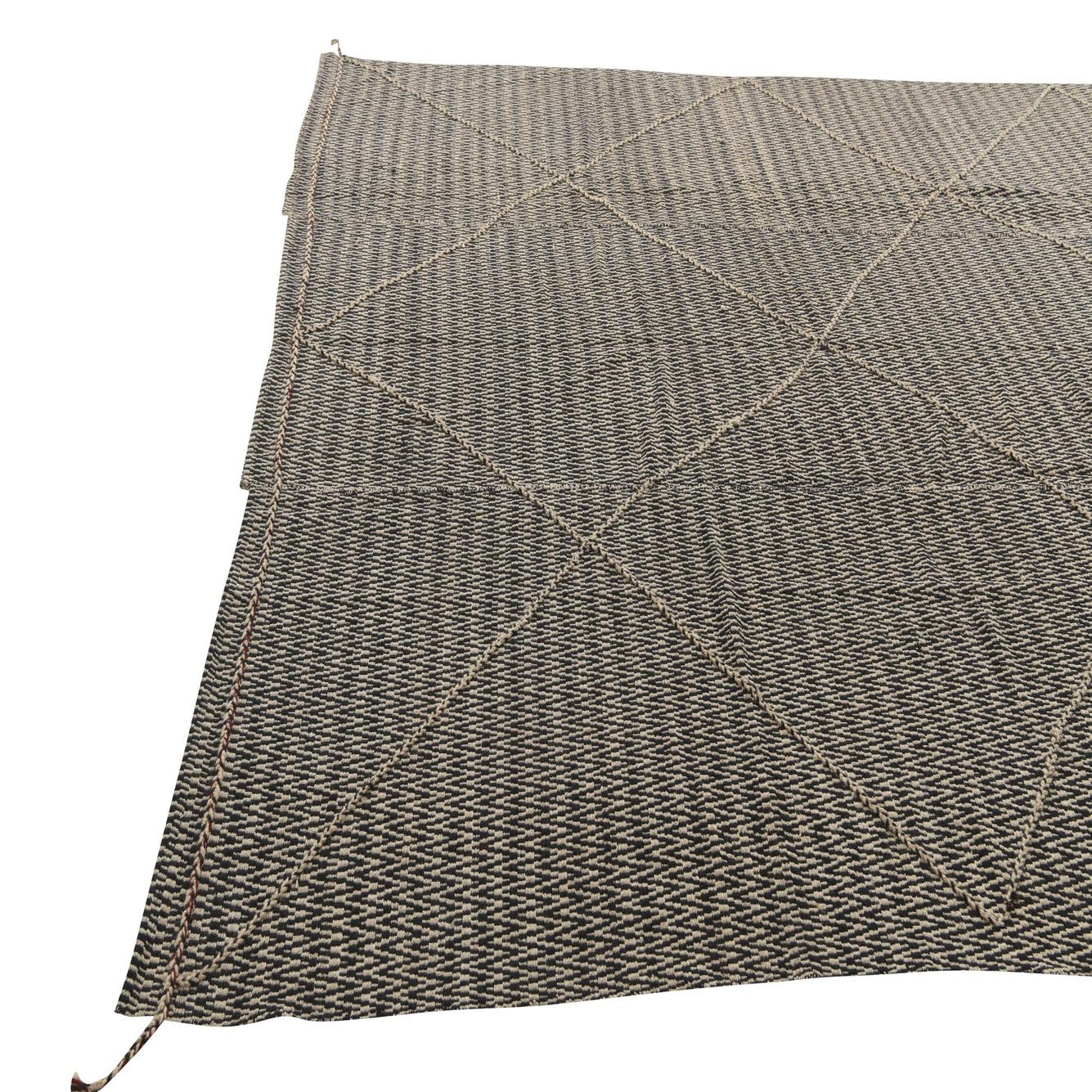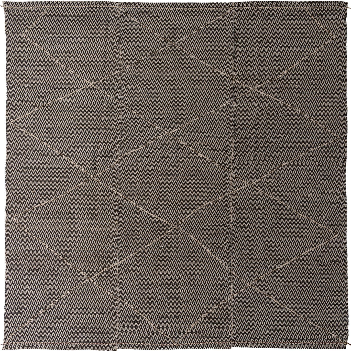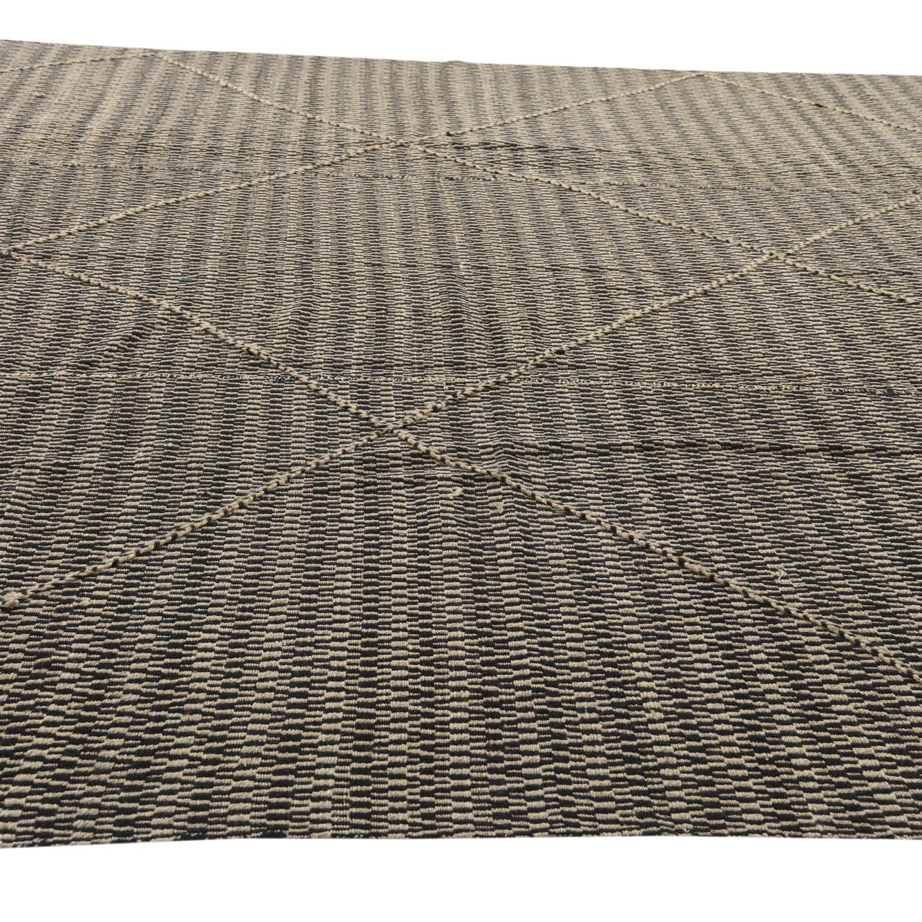 The rug's monochromatic palette and geometric design provide a versatile foundation for various interior design scenarios. It complements a modern or minimalist decor, adding a touch of sophistication without overwhelming the space. Alternatively, it could serve as an anchor in an eclectic setting, balancing out more colorful or intricately patterned elements.