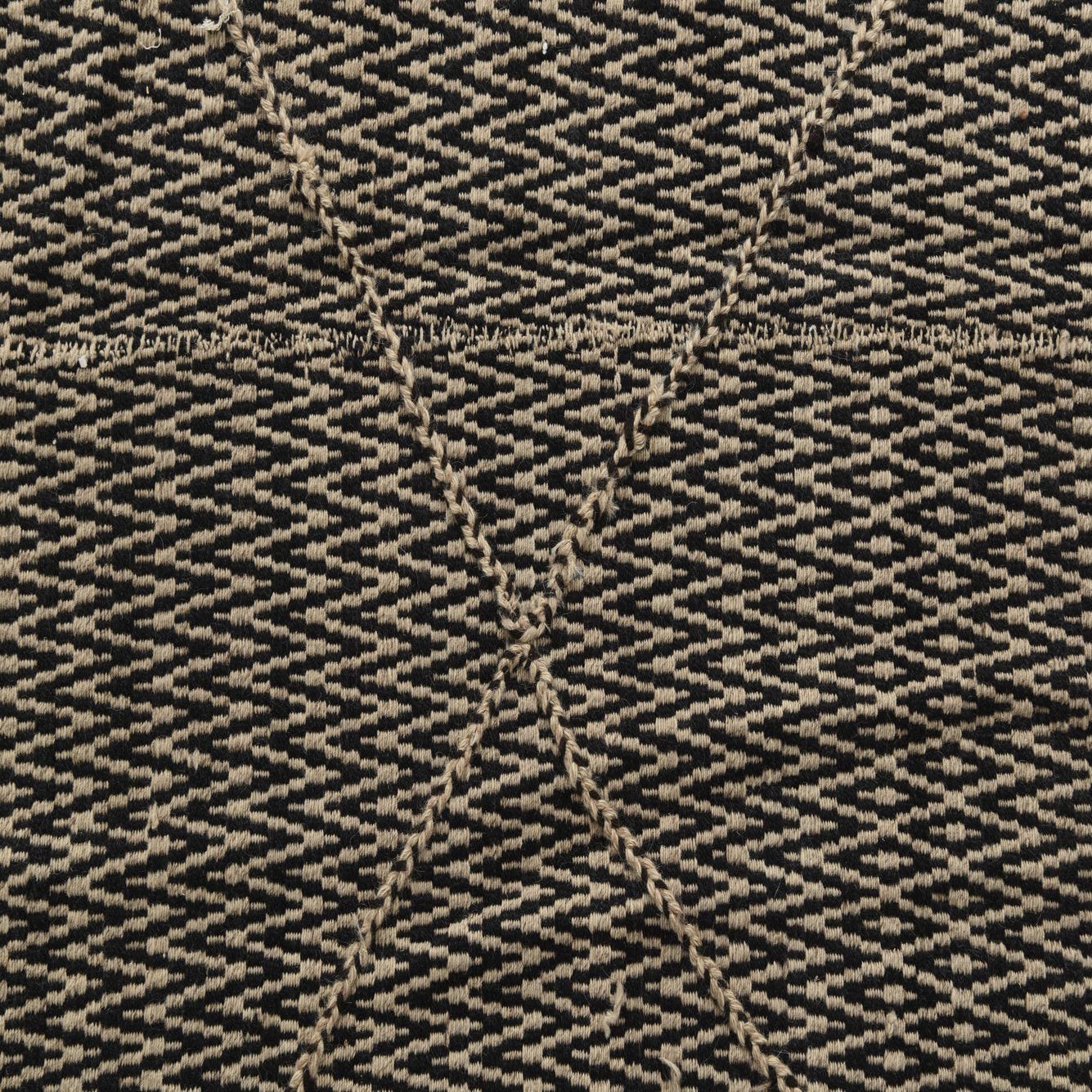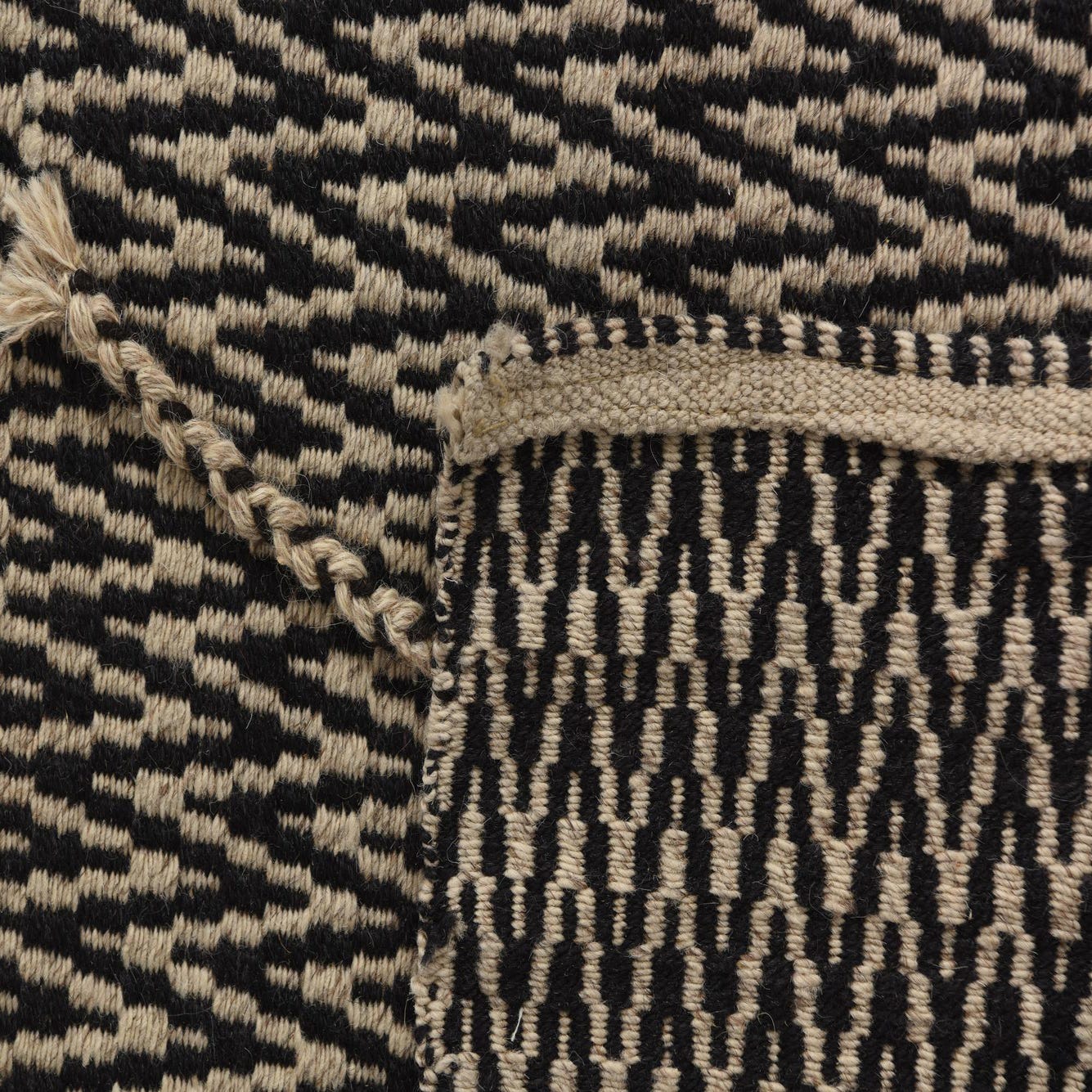 A 10x14 rectangular black and ivory tribal wool shag rug with a modern geometric pattern.