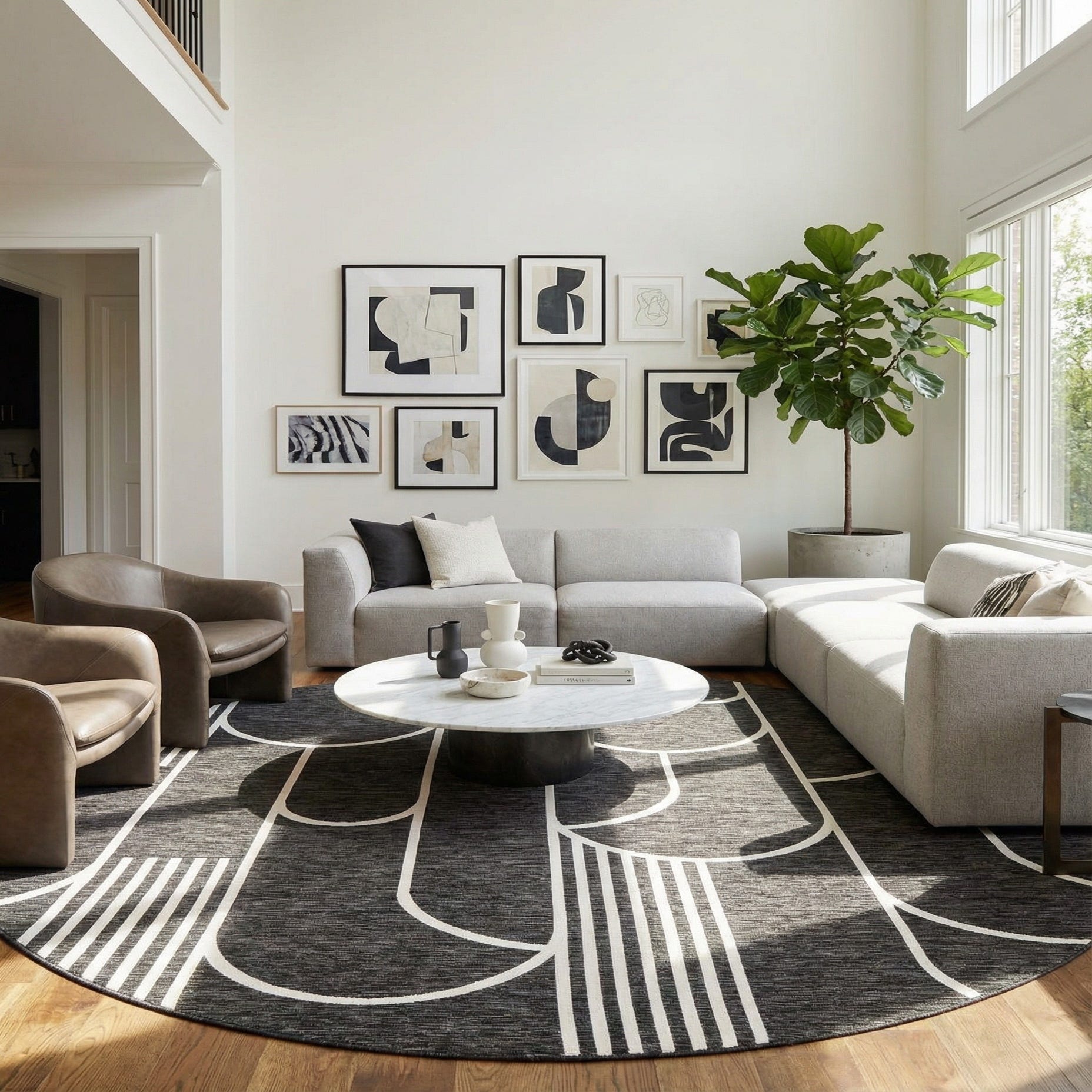 12' x 12' Washable Modern Indoor / Outdoor Round Rug